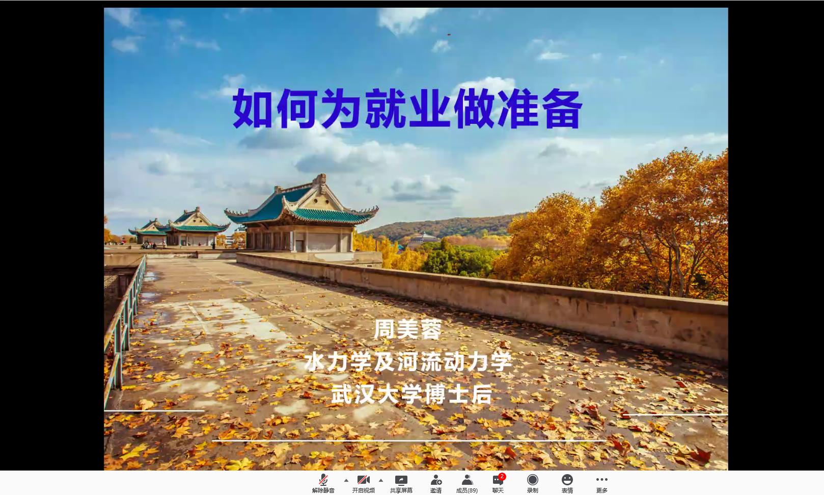 8月23日晚20:30,水利水电学院博士生毕业经验交流会以腾讯会议的形式召开,院党委副书记龚文德,研究生辅导员左志香、李响,博士生分会组织代表及90多位研究生参会。
