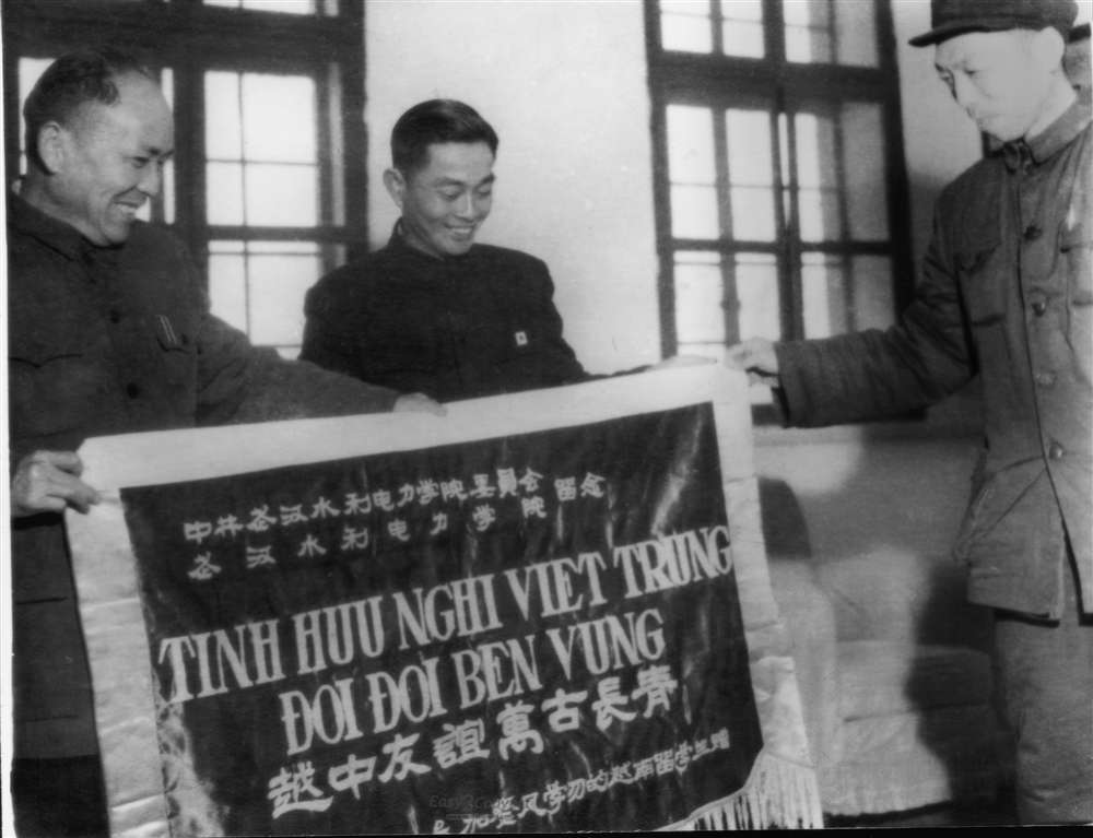 整风学习期间 越留学生向校领导赠锦旗(由越大使馆文化参赞赠)