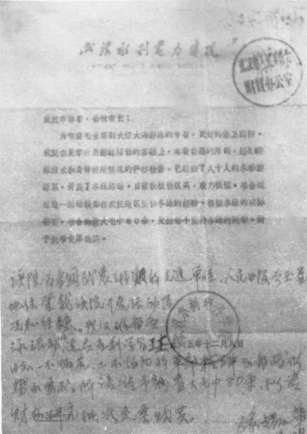 孙光晔有关我校免票购冬泳大毛巾的批语(65.12)