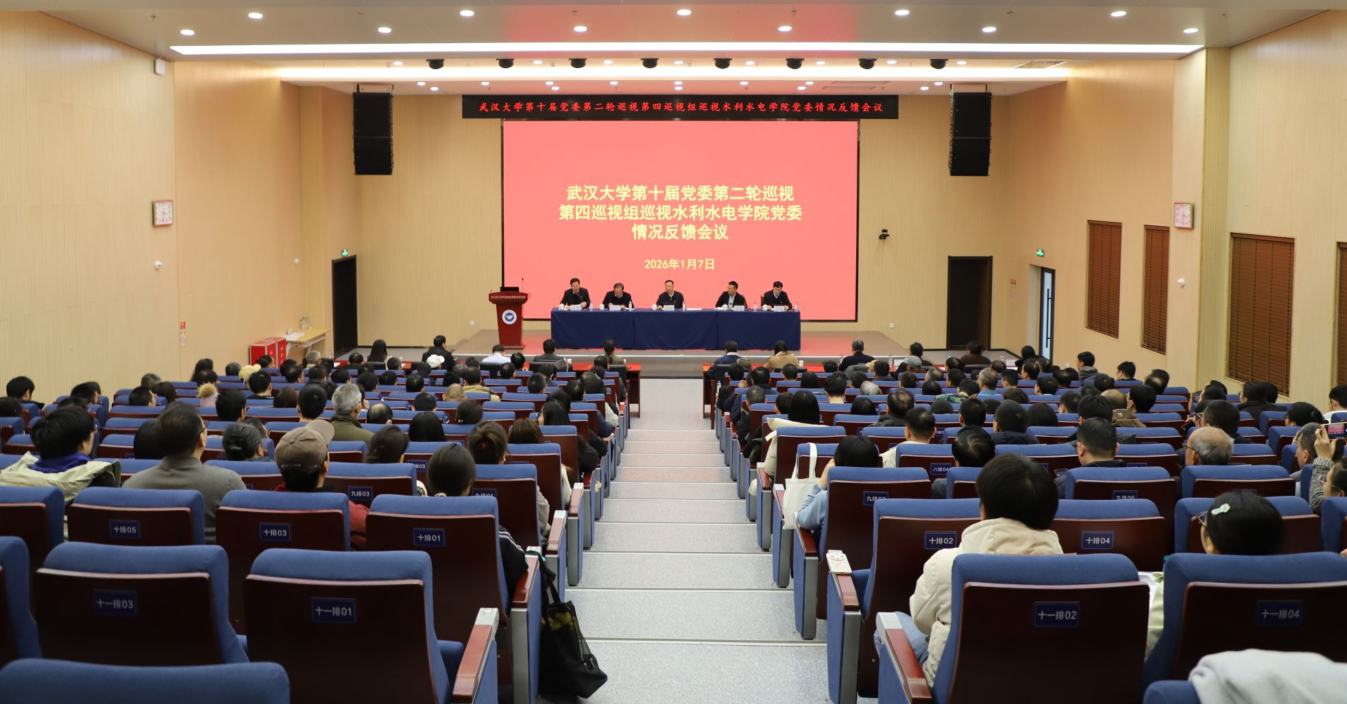 1月7日,武汉大学第十届党委第二轮巡视第四巡视组巡视水利水电学院党委情况反馈会召开。校党委书记、党委巡视工作领导小组组长朱孔军出席会议并讲话。校纪委副书记、党委巡视工作领导小组办公室主任左军、第四巡视组同志出席会议。第四巡视组组长孙太怀宣读学校党委巡视反馈意见。水利水电学院党委书记李典庆作表态发言。水利水电学院院长刘攀主持会议。水利水电学院领导班子成员、党委委员,党员教职工代表、民主党派代表、群众代表、... >>