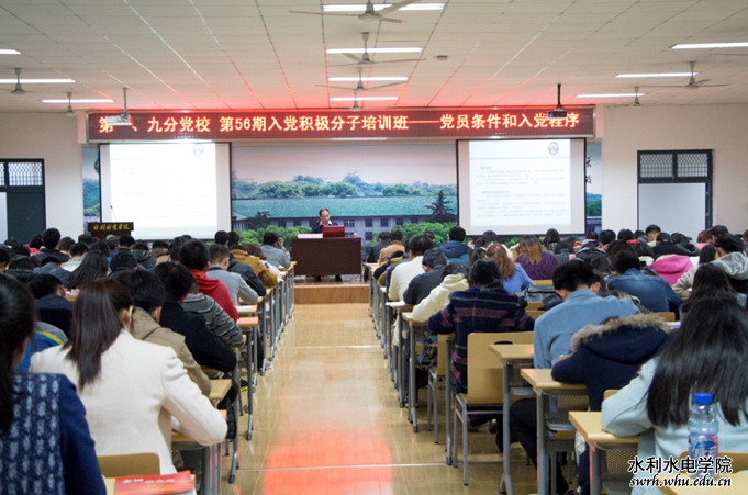 11月13日晚,武汉大学党委副书记、副校长王传中教授应邀在8301报告厅为水利水电学院第56期入党积极分子们上了一堂以《党员条件和入党程序》为题的精彩党课。 >>