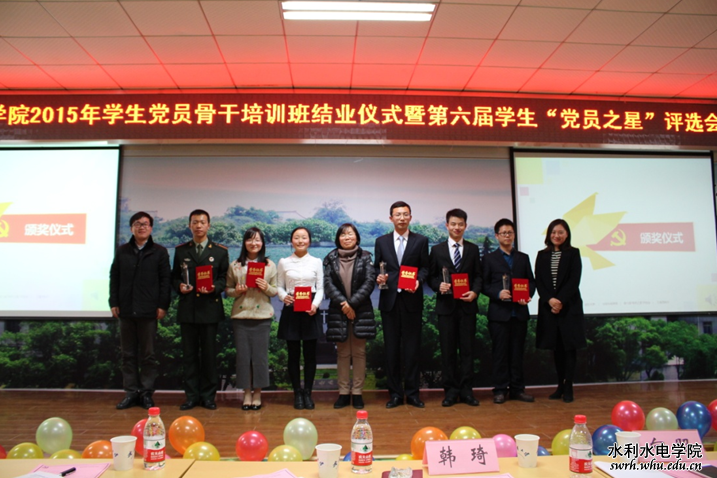 ——记水利水电学院2015年学生党员骨干培训班结业仪式暨第六届“党员之星”评选会 12月14日晚6点30分,水利水电学院2015年学生党员骨干培训班结业仪式暨第六届“党员之星”评选会在八教301报告厅顺利举行。 >>