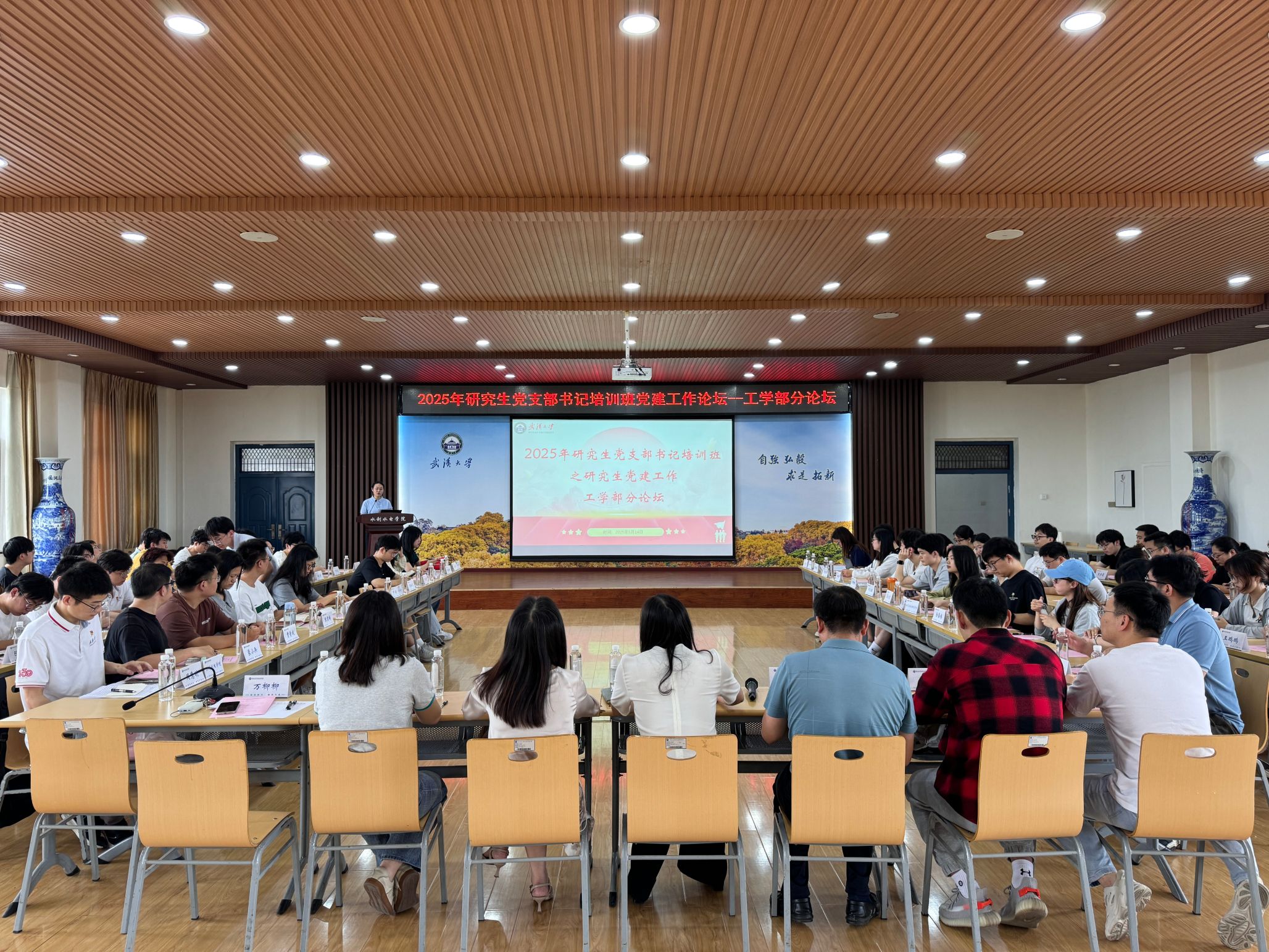 5月14日下午,由武汉大学党委研究生工作部主办、水利水电学院承办的“2025年研究生党支部书记培训班党建工作论坛”工学部分论坛在8328报告厅顺利举行。本次论坛以“探索党建与业务工作深度融合的路径”为主题,深入探讨了新时代工科研究生党支部建设的创新做法与实践成果。水利水电学院党委副书记左志香、土木建筑工程学院党委副书记王忠海、工业科学研究院副院长陈婉兰、工学部各学院研究生辅导员出席会议,工学部研究生党支部书记及党员骨干参与培训研讨。