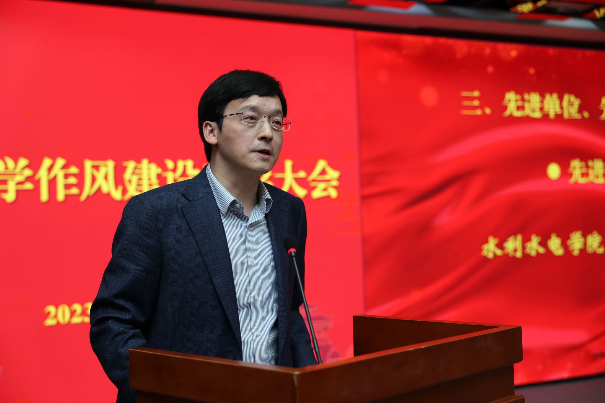 学院党委书记李典庆作为先进单位代表,作主题为“以扎实的作风提升管理服务,推进学院高质量发展”的交流发言。