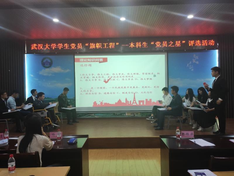 5月16日晚7点,武汉大学学生党员“旗帜工程”——本科生“党员之星”评选活动在工学部8328报告厅举行。党委学生工作部副部长仲华、水利水电学院党委副书记张栋梁,相关院系辅导员参加活动并担任评委。