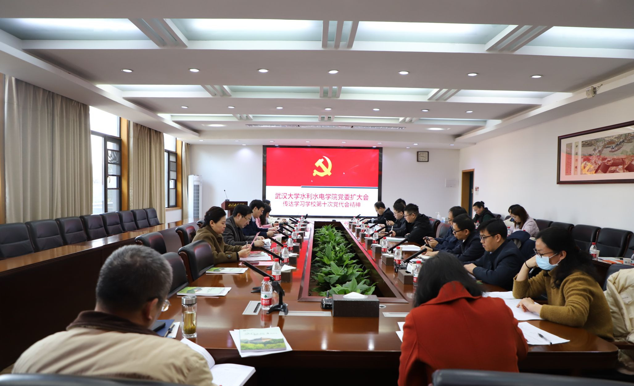 近期,中国共产党武汉大学第十次党员代表大会隆重举行。1月6日上午,水利水电学院在学院8213会议室召开党委(扩大)会议,传达学习学校第十次党代会精神。学院和全国重点实验室领导班子、院党委委员、教职工党支部书记和机关办公室主任参加会议。院党委书记、全国重点实验室主任李典庆主持会议并讲话。