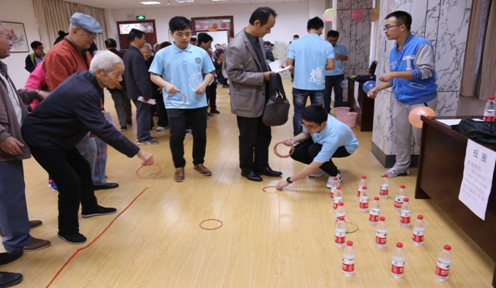 随后,在30余名志愿者耐心且细致的指引下,老教师们开展了重阳节游园活动。根据老教师们的身体情况,游园会设置了猜谜语、唱红歌、抹鼻子等8项趣味活动。过程有趣而欢乐,气氛融洽而热烈,不时传来老教师们的欢笑声、喝彩声。为期两个多小时的游园活动,让离退休职工们既度过了欢乐、温馨的时光,又切身感受到了学院对于他们的重视、关怀和温情。