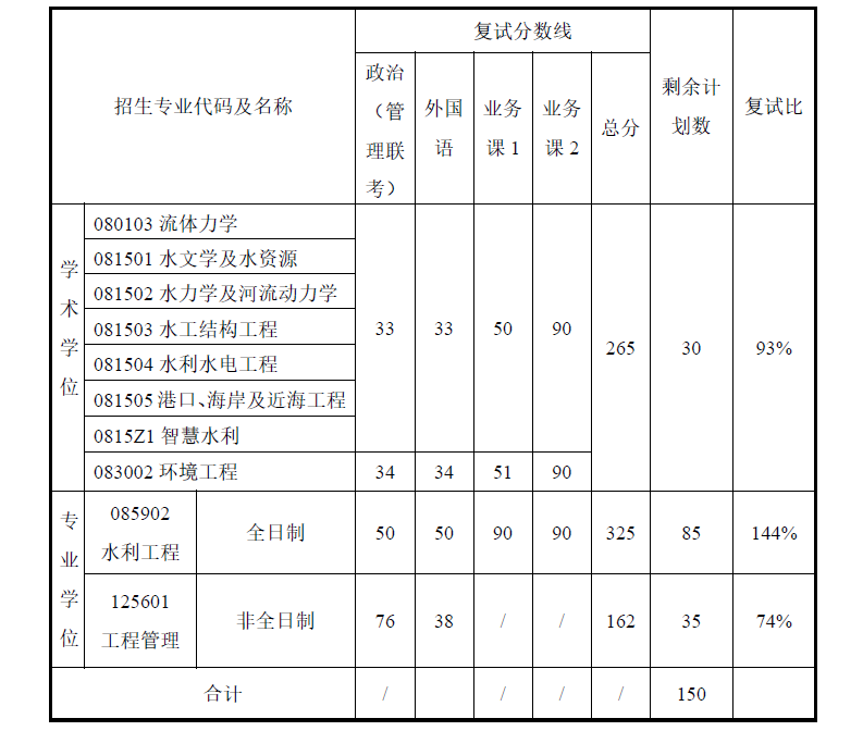 3. 统一平台招生,水工程科学研究院招生计划已包含在相关专业内。