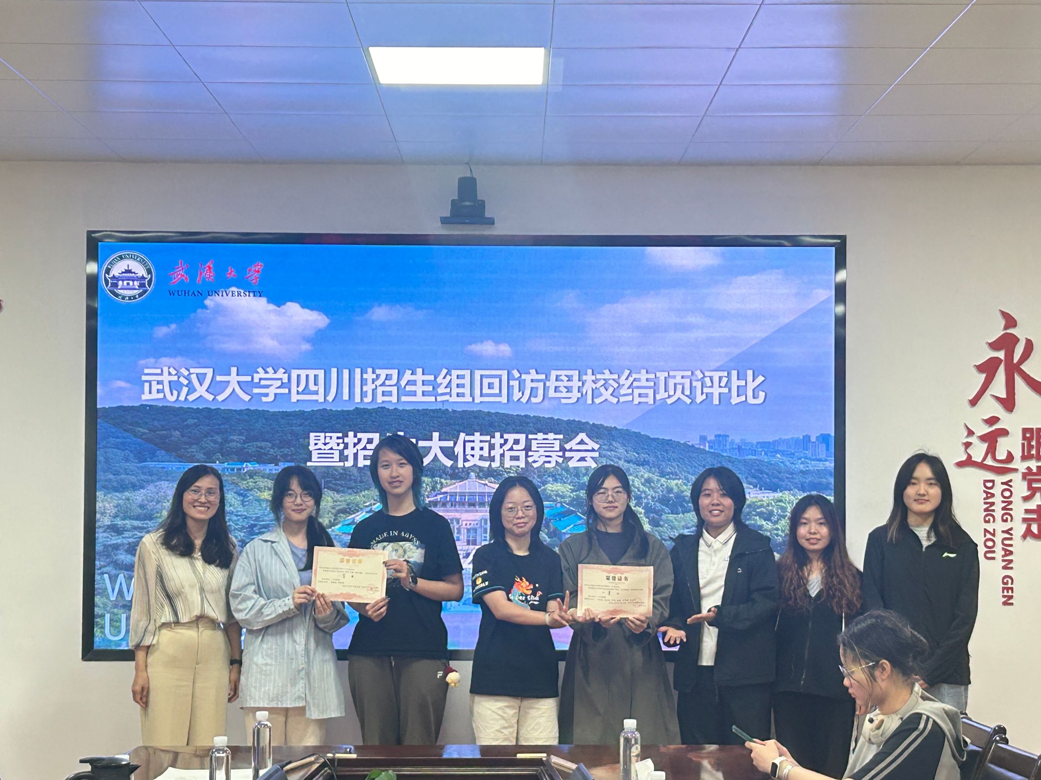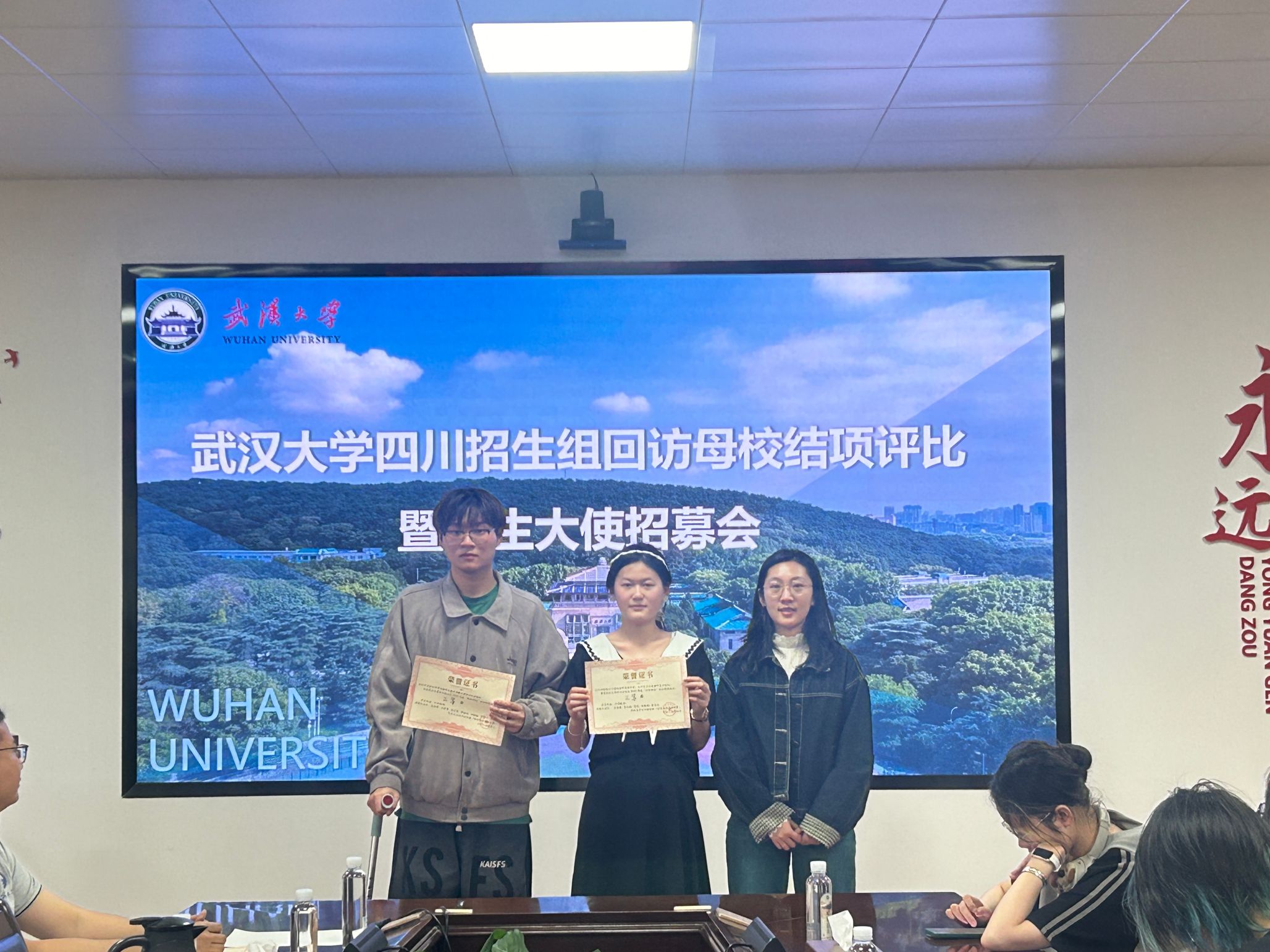 表彰结束后,左志香进一步肯定了各实践团队的成绩,代表招生组表达了感谢并作2025年招生大使招募动员,鼓励同学们继续用自己在武大的切身体会,将武大精神内核与学科优势传递给更多川籍学子。现场学生深受鼓舞,纷纷扫码报名参与后续招生工作。