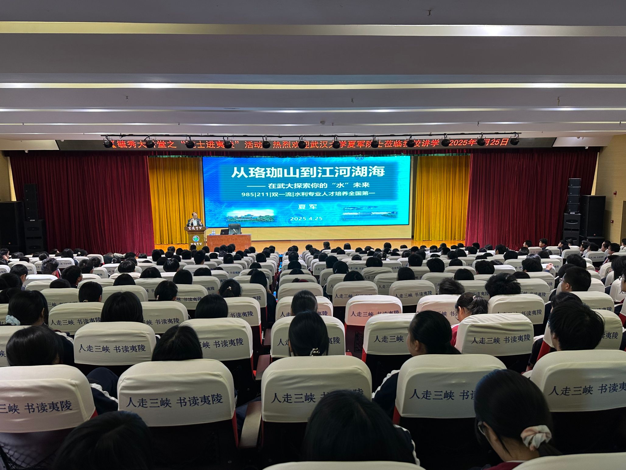4月25日,武汉大学夏军院士前往夷陵中学开展科普讲座,引发师生的热烈反响。学院副院长(主持工作)刘攀、党委副书记于敏、事务助理李志威、团委书记邓力源、辅导员慈晓虎一同前往。