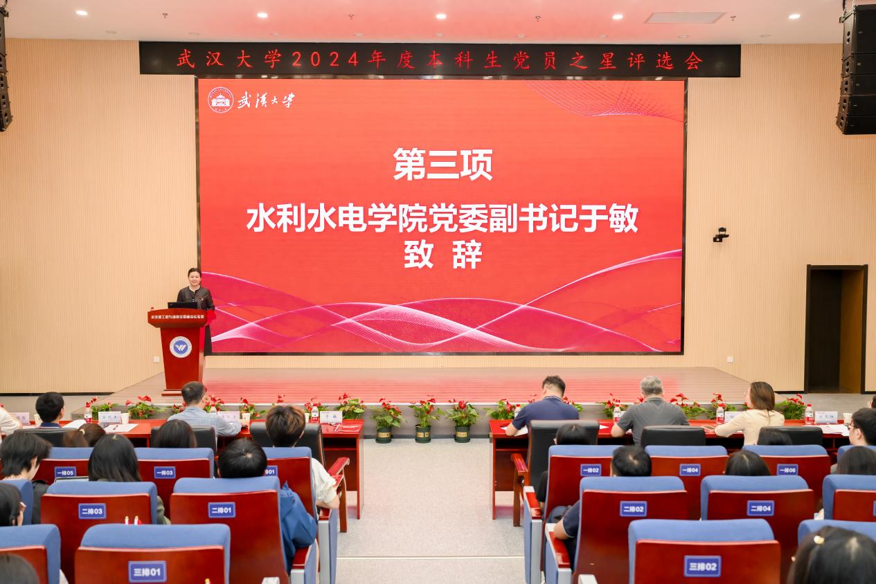 青春五月,党旗飘扬;珞珈山下,英才辈出。4月29日晚,由党委学生工作部主办、水利水电学院本科生党总支承办的武汉大学2024年度本科生“党员之星”评选活动顺利举办。党委学生工作部副部长徐国章、水利水电学院党委副书记于敏、动力与机械学院党委副书记匡松、土木建筑工程学院党委副书记王忠海、哲学学院党委副书记刘慧、基础医学院党委副书记金晓庆、政治与公共管理学院国际关系系副教授刘天阳、马克思主义学院中共党史党建系教师毕鸿昌及党建辅导员代表出席本次活动,来自各学院的160余名本科生党员代表现场观摩学习。
