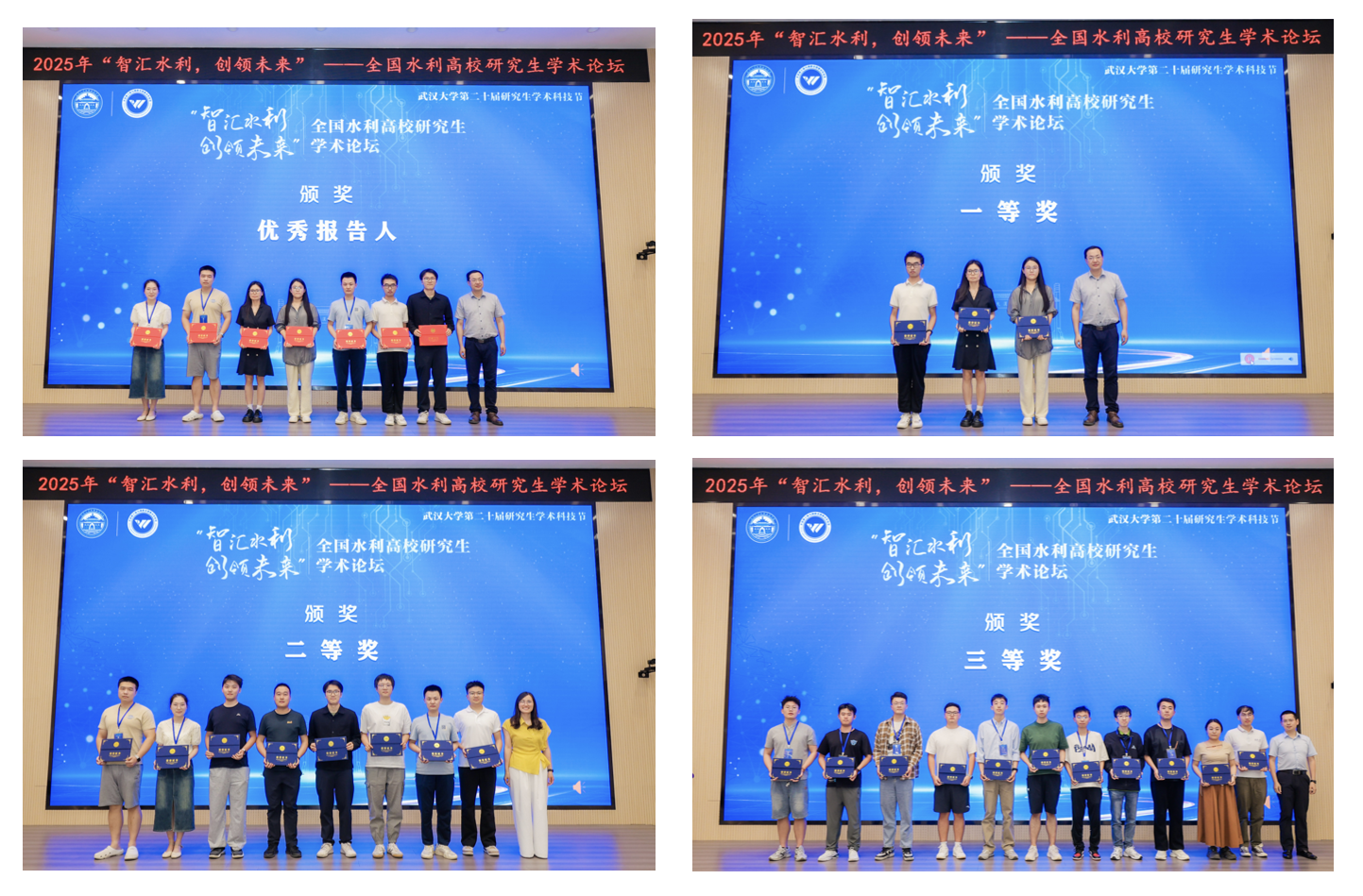 论坛设有 “数智赋能水利水电工程创新与实践”“数智赋能水文水资源研究创新”“智慧港航与河流:数智赋能水运发展”“数智赋能农业水利现代化” 四个分论坛。各高校研究生围绕主题,结合大数据、智能算法、数字孪生、遥感监测等前沿技术,汇报了其在水利关键问题上的创新探索,展现了新一代水利人的科研素养与责任担当。