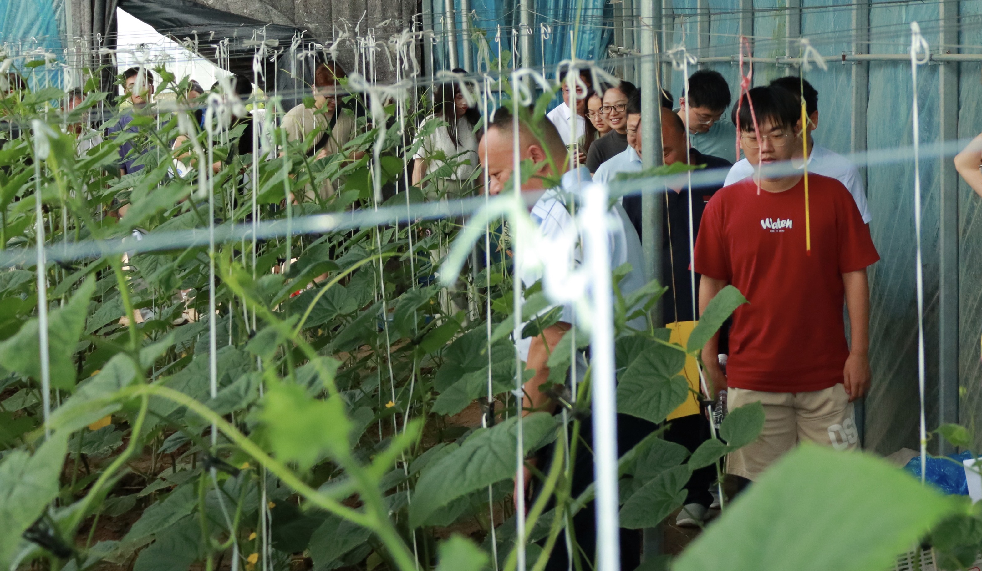 乡村振兴离不开特色产业。在鱼类高密度养殖及冷库厂房,实践队看到新湖镇为推动渔业转型升级、挖掘闲置资源潜力,将闲置多年的老旧厂房改造为工业化高密度渔业养殖基地;在“藕虾套养”水田,大家了解到当地抢抓全省首批水田改造试点机遇,实施数千亩水田改造项目,显著提升了生态渔业基地的综合生产能力,为农民拓宽了多元化收入渠道;在大棚种植园,同学们看到当地通过发展蔬菜瓜果大棚种植,以多元化产业发展模式实现富农目标,详细了解了当地乡村振兴的生动实践。
