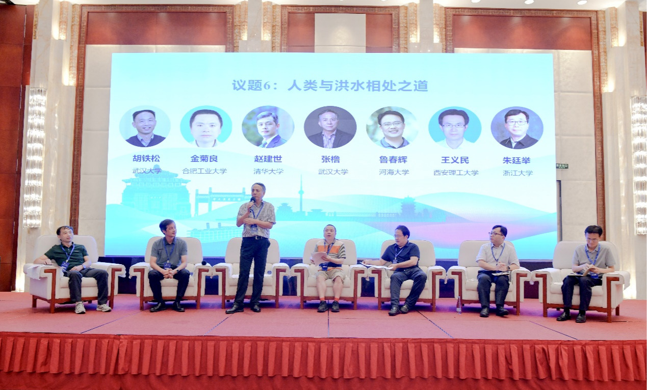 议题六由武汉大学张橹教授主持,清华大学赵建世教授、河海大学鲁春辉教授、合肥工业大学金菊良教授、西安理工大学王义民教授、武汉大学胡铁松教授、浙江大学朱廷举教授六位嘉宾展开深入讨论。专家从工程与非工程措施的结合、保险制度建设、信息技术与人工智能应用、基于自然的解决方案、农作物定量研究及风险决策优化等多方面,探讨了人洪关系的演变与未来方向。讨论指出,中国与其他国家防洪策略均经历了“工程为主-工程与非工程结合-综合管理”的演进,但依然面临极端洪水频发、风险转移、生态关系割裂及空间尺度协调等挑战。专家们提出,应充分利用洪水风险的地理互补性,推动保险制度和责任分担机制建设;同时加强数字孪生、人工智能与水文气象的融合,提升洪水预见性和管理能力;倡导基于自然的解决方案,实现人水和谐与洪水资源合理利用。未来的人洪关系应从“对抗”走向“共生”,以系统性、协同性和韧性化管理为核心方向。