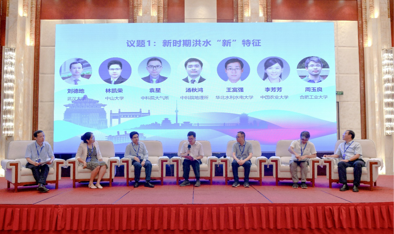 议题一由中国科学院地理所汤秋鸿研究员主持,中国科学院大气物理所袁星研究员、中山大学林凯荣教授、华北水利水电大学王富强教授、中国农业大学李芳芳教授、合肥工业大学周玉良教授、武汉大学刘德地教授六位嘉宾组成圆桌会议,重点研讨和交流了新时期洪水具备突发性强、成因复杂和风险扩大的新特征。“北涝”态势逐渐显现,极端降水频率和强度显著增强,旱涝急转和复合型洪水成为突出问题。机制上,气候变暖、水汽输送与大气河流频率的变化,以及下垫面和城市排水能力不足,共同导致洪水风险加剧。洪水类型呈现多样化,暴洪、山洪与骤洪的识别与应对成为防控重点。与会专家强调,应科学调整防洪标准,提升监测预报和蓄泄能力,优化城市排水与防洪设施,并依托大数据和智慧平台构建现代化防御体系,以应对新时期洪水带来的综合挑战。