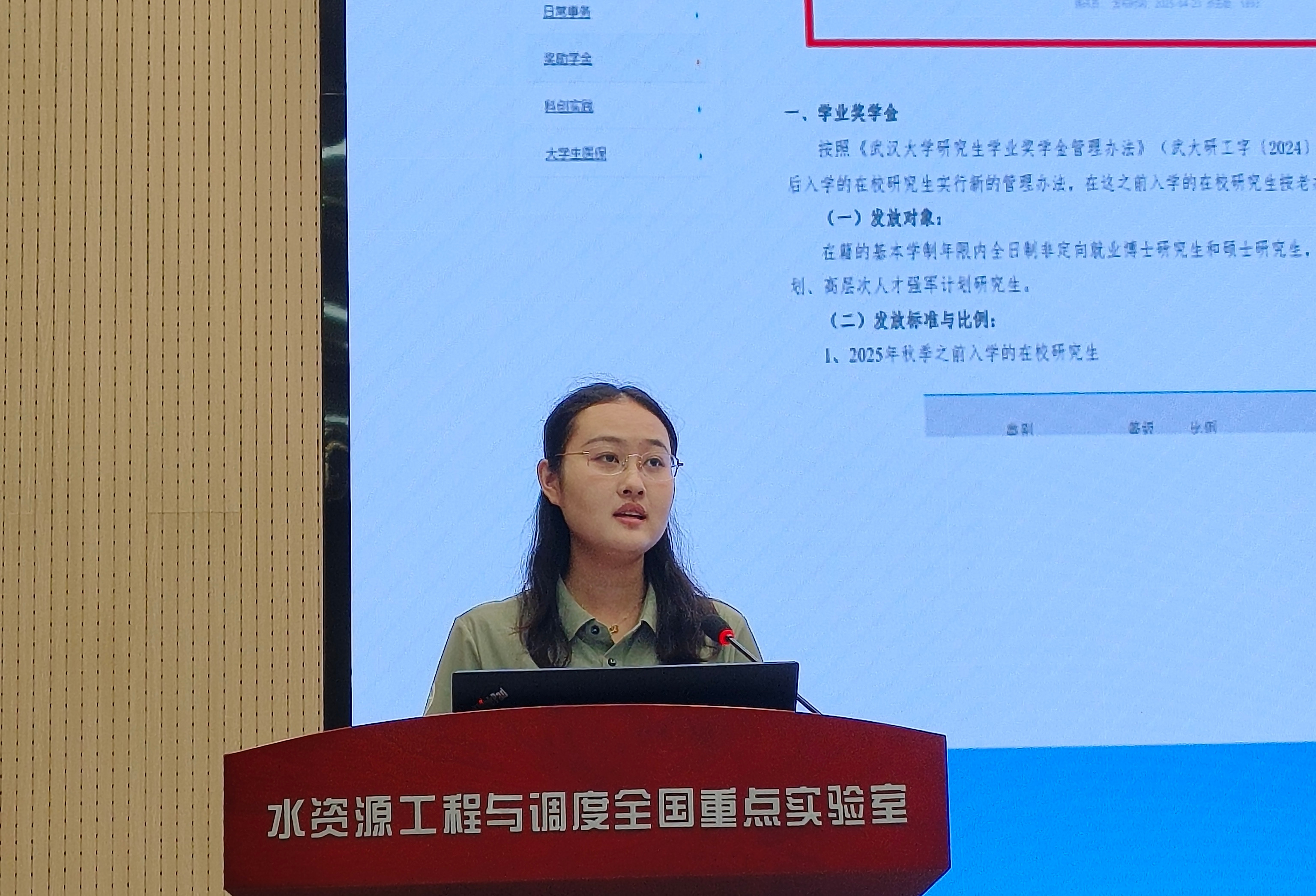 9月5日,学院2025级研究生新生见面会在水电科技大楼B109报告厅圆满举行。学院党委书记、全国重点实验室主任李典庆,院长刘攀,党委副书记于敏、左志香,副院长伍靖伟、夏军强、杜文琪、马刚(挂职),各系书记、主任,研究生教学秘书、专兼职辅导员以及2025级研究生新生参会。李典庆代表学院全体师生员工向同学们表示热烈欢迎,勉励新生秉持院训精神,在科研与人生的道路上不断突破、绽放光彩。刘攀向新生介绍学院情况,从“做好研究”这一研究生学习的主线出发引导研究生勤勉科研、担当作为。