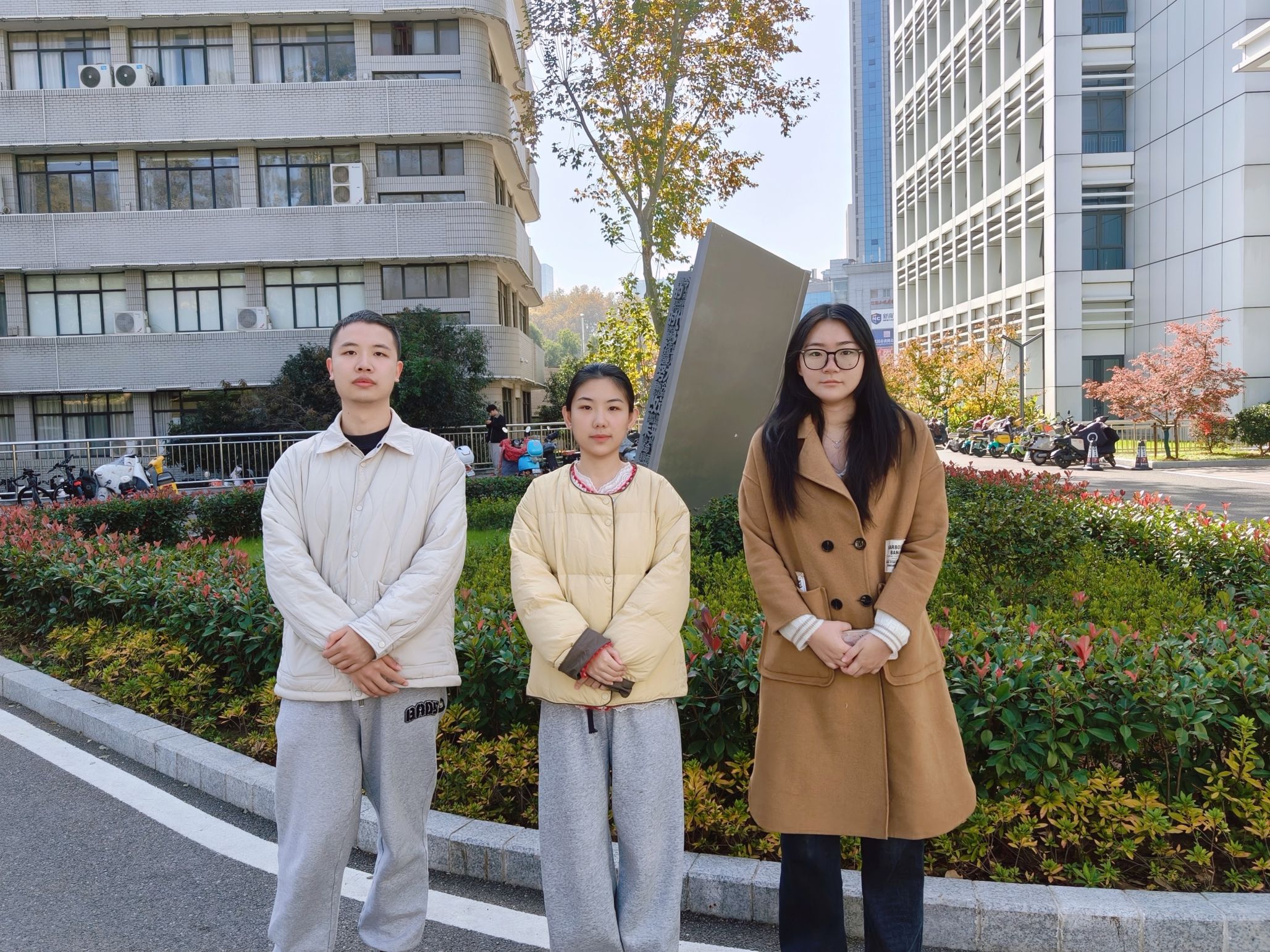 学院参赛队员: 张嘉维(中间)、周杨(左一)、金璐瑶(右一)