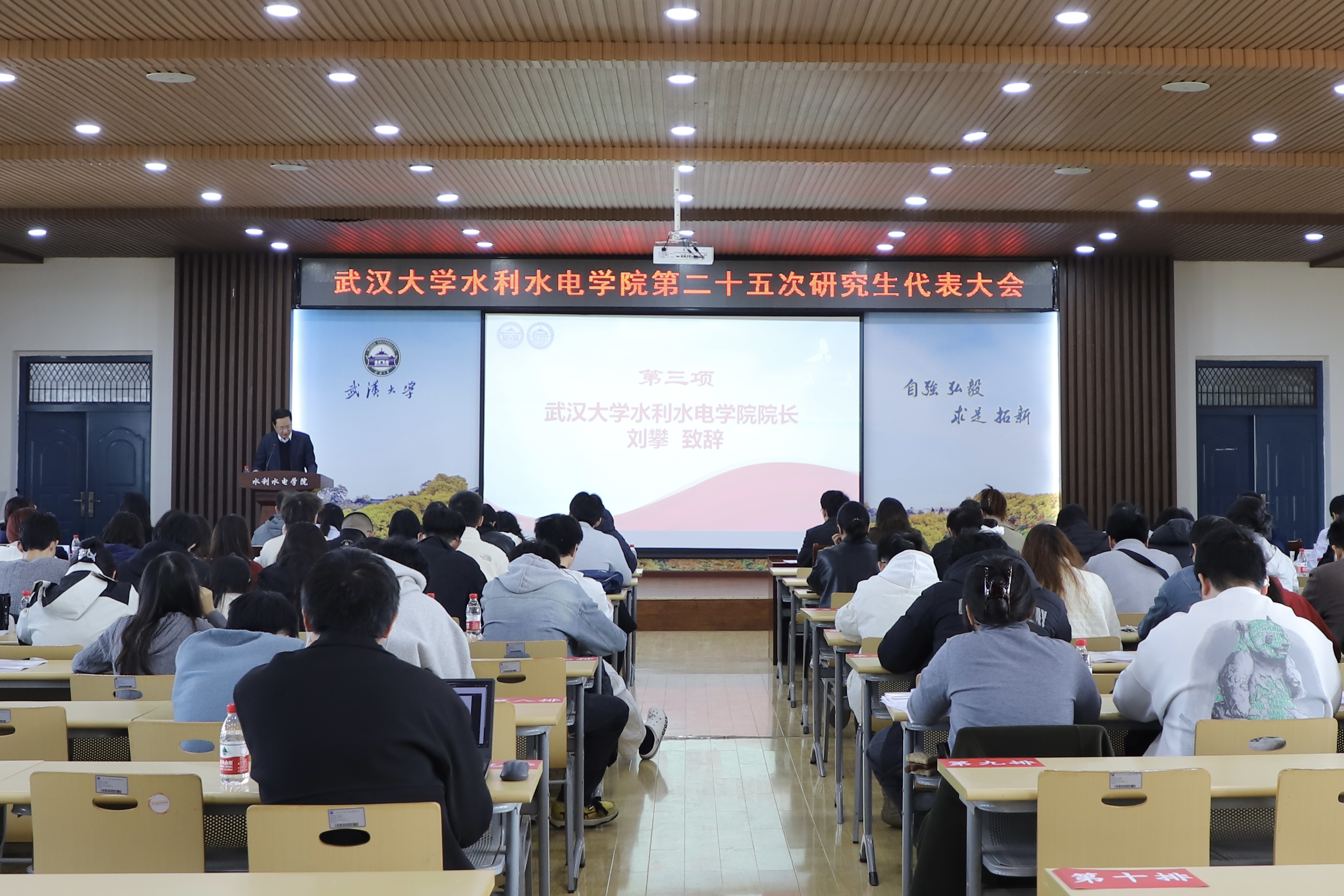 12月1日下午,学院第二十五次研究生代表大会在8328报告厅顺利召开。武汉大学团委副书记迟宗宝、水利水电学院院长刘攀、院党委副书记左志香、校研究生会主席团成员李程蔚,学院全体专兼职辅导员及各年级研究生代表共120余人参加了本次大会。大会由院研究生会执行主席王慧主持。