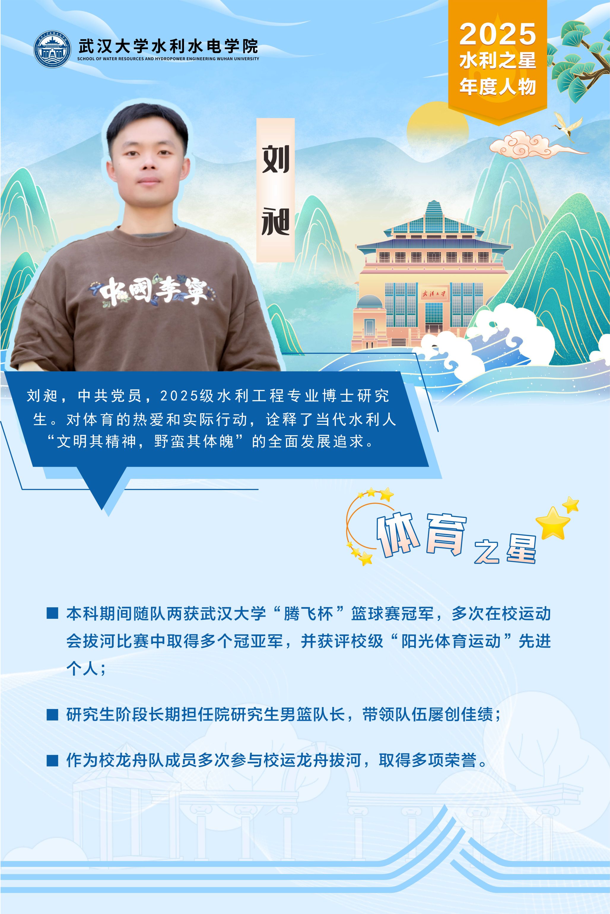 刘昶,中共党员,2025级水利工程专业博士研究生。他以篮球为志,以龙舟为行,在赛场内外传递团队火种。他用十年如一日的热爱与担当,诠释了水利人“野蛮体魄,文明精神”的生动篇章。