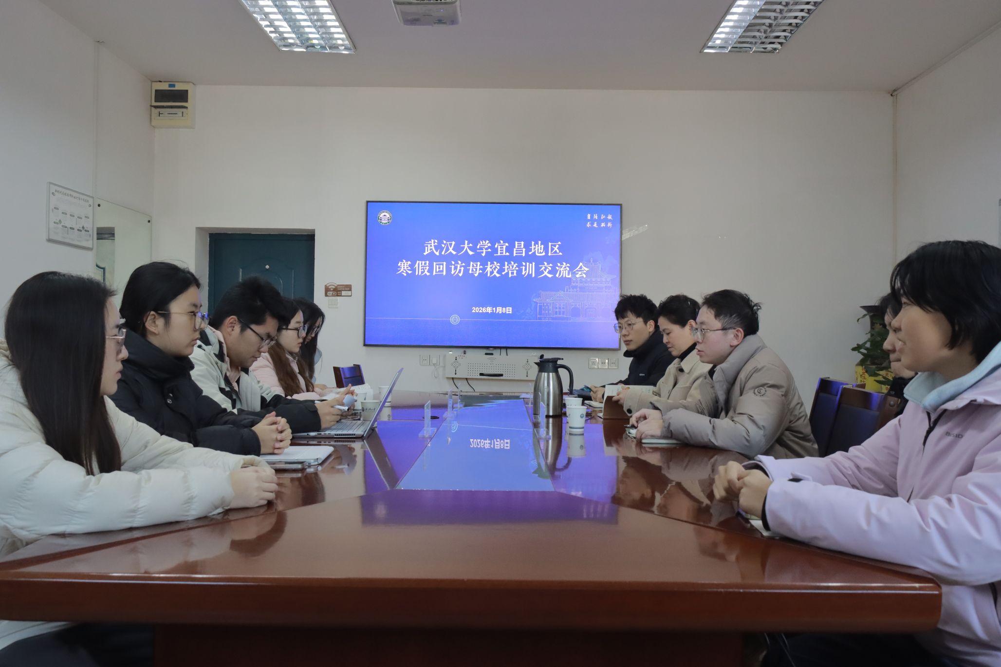 1月8日,武汉大学宜昌招生组2026年寒假回访母校培训交流会顺利举行。本次会议旨在总结过往经验,加强各实践队间的交流协作,确保寒假回访母校活动高质量开展。武汉大学宜昌招生组组长、院党委副书记于敏,院团委书记、本科生辅导员邓力源,本科生辅导员慈晓虎,往届优秀实践队代表以及2026年各寒假回访母校实践队成员参加会议,会议由邓力源主持。