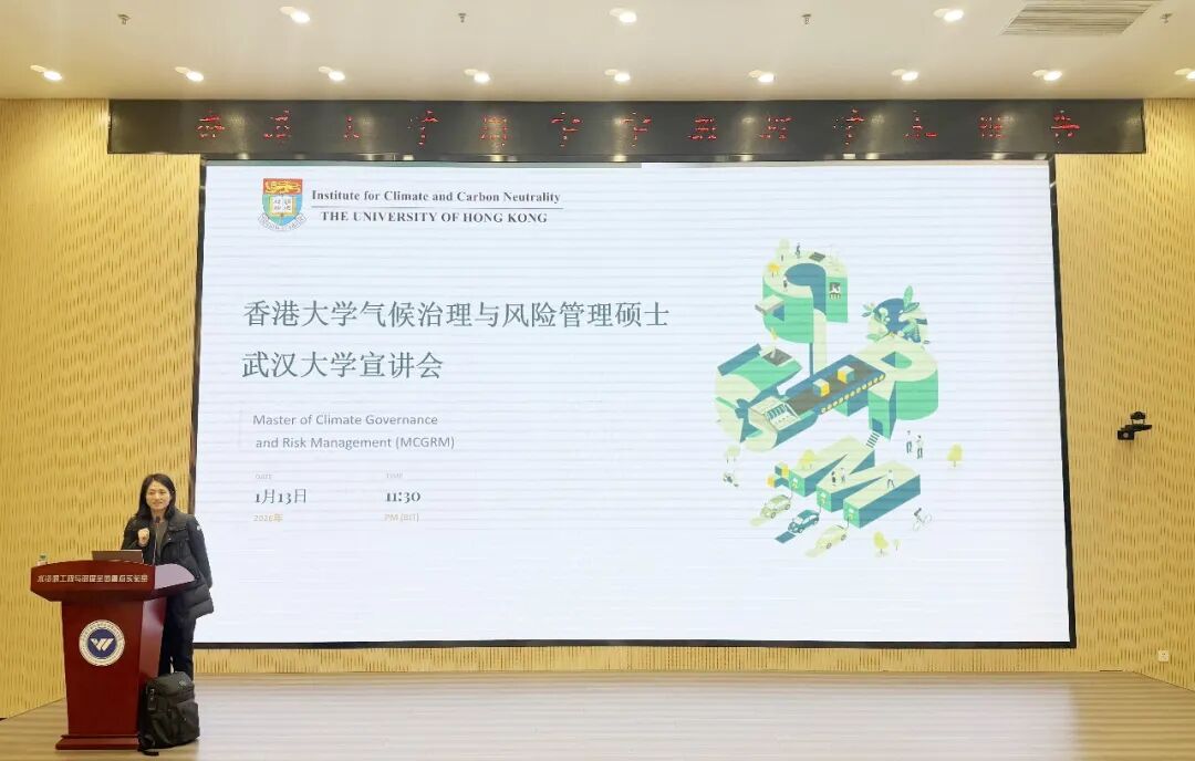 倪丹菲老师详细介绍了香港大学气候治理与风险管理硕士项目。该项目课程涵盖气候变化政策与法律、气候金融与ESG、产品碳足迹管理、气候风险建模等前沿方向,并与联合国相关机构、国际金融组织及知名企业ESG部门建立合作,为学生提供气候风险咨询、绿色金融实践等实习机会。为深化两校合作,ICCN拟为武汉大学碳中和自强班优秀学生提供专项奖学金,欢迎武大师生通过气候周、夏令营等形式赴港交流,拓宽学术与职业发展视野。