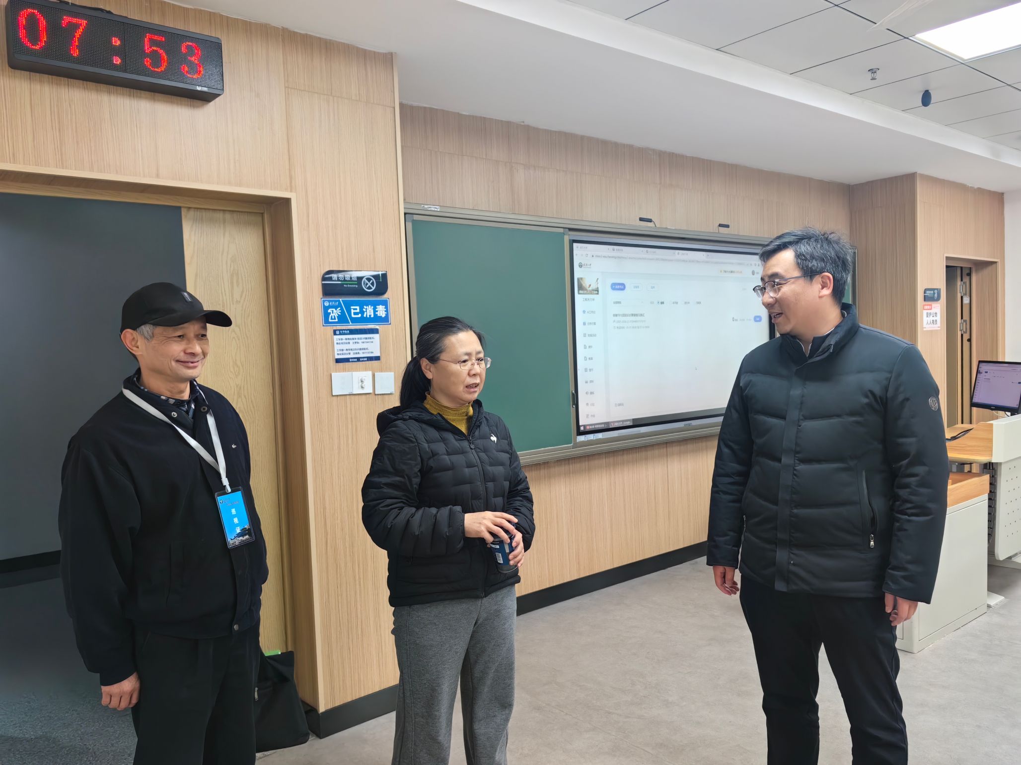 检查过程中,马刚与任课教师深入交流,详细了解新学期课程筹备情况及教学安排,并与同学们亲切交谈,勉励大家迅速调整状态,以饱满的热情投入到新学期的学习生活中。巡查组对各项教学准备工作给予充分肯定。