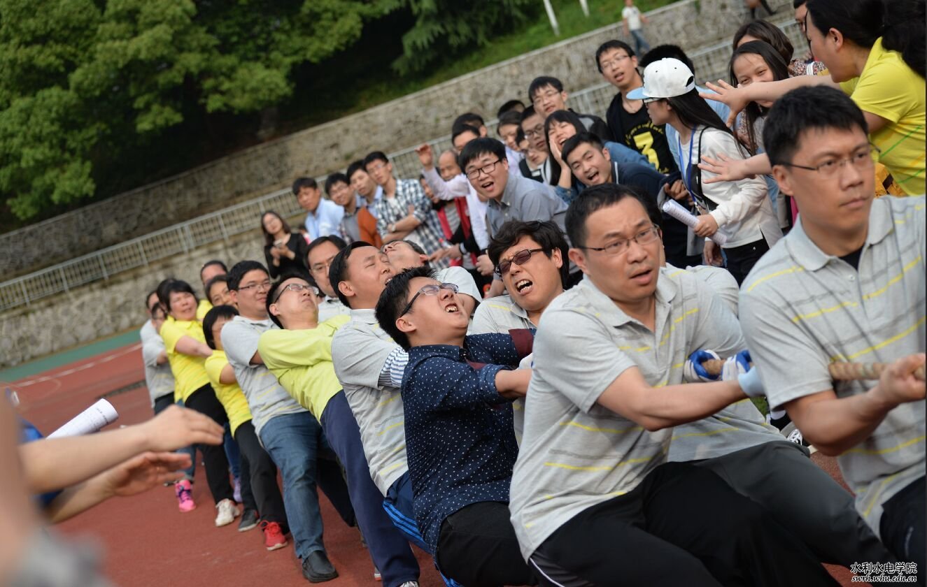 近日,武汉大学第四届教职工拔河比赛拉开帷幕。我院代表队在21日下午的第一阶段甲级队小组赛中旗开得胜,战胜图书馆和资源与环境科学学院,在小组排名中占据主动。学院党委书记程连珍,党委副书记周玉霞,副院长吴运卿等亲临现场,为我院教职工加油鼓劲。