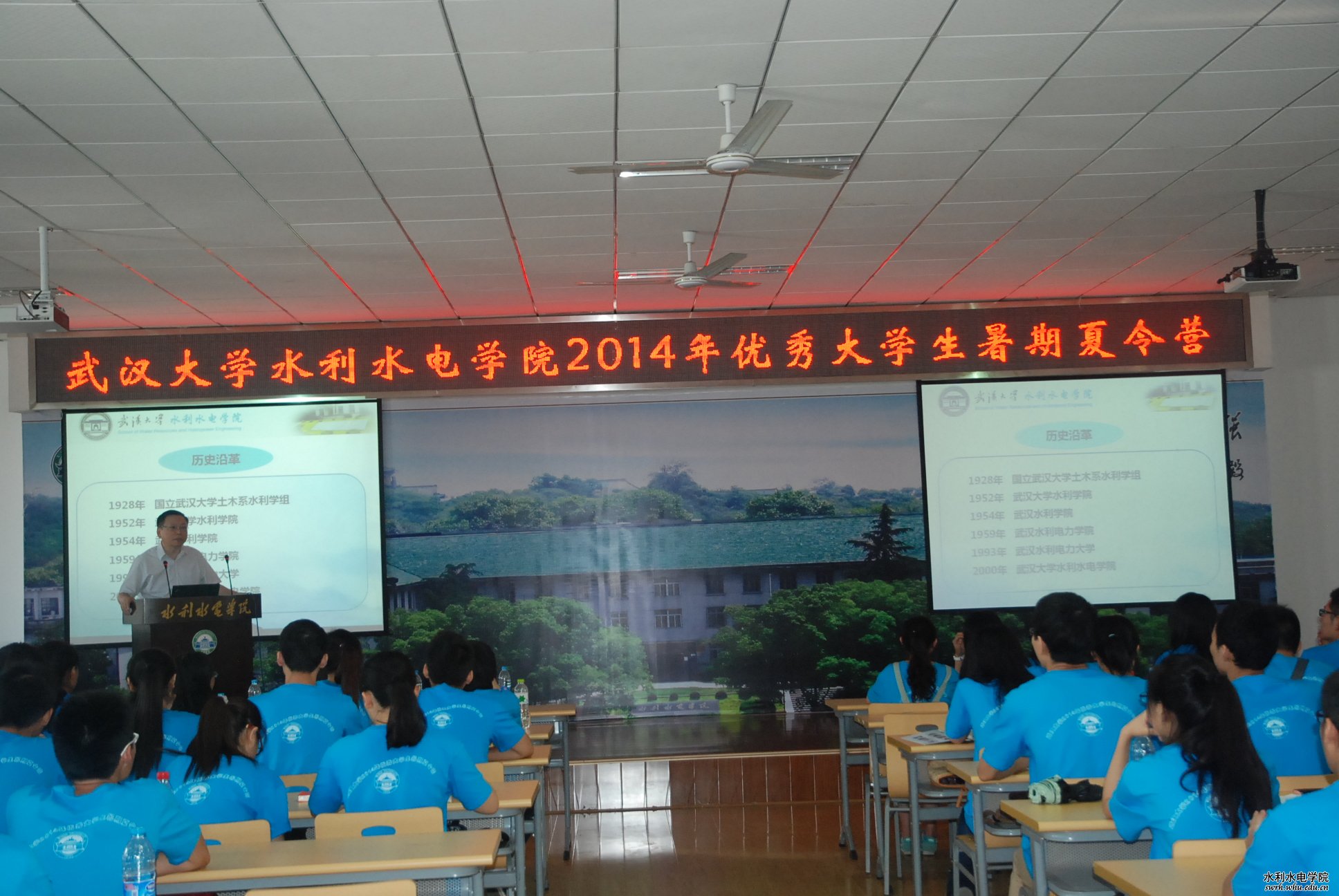 7月7日至9日,2014年优秀大学生暑期夏令营成功举办,来自武汉大学、四川大学、中山大学、大连理工大学、西北农林科技大学等24所985、211高校的近150名优秀大学生参加了此次夏令营活动。广大营员在开营仪式、参观实验室、同学交流会、优秀营员选拔考核等丰富多彩的活动中,增进了对武汉大学的了解,促进了各高校优秀大学生之间的沟通交流,激发了他们对武大水利的向往之情和对水利工程学科学习、研究的兴趣。
