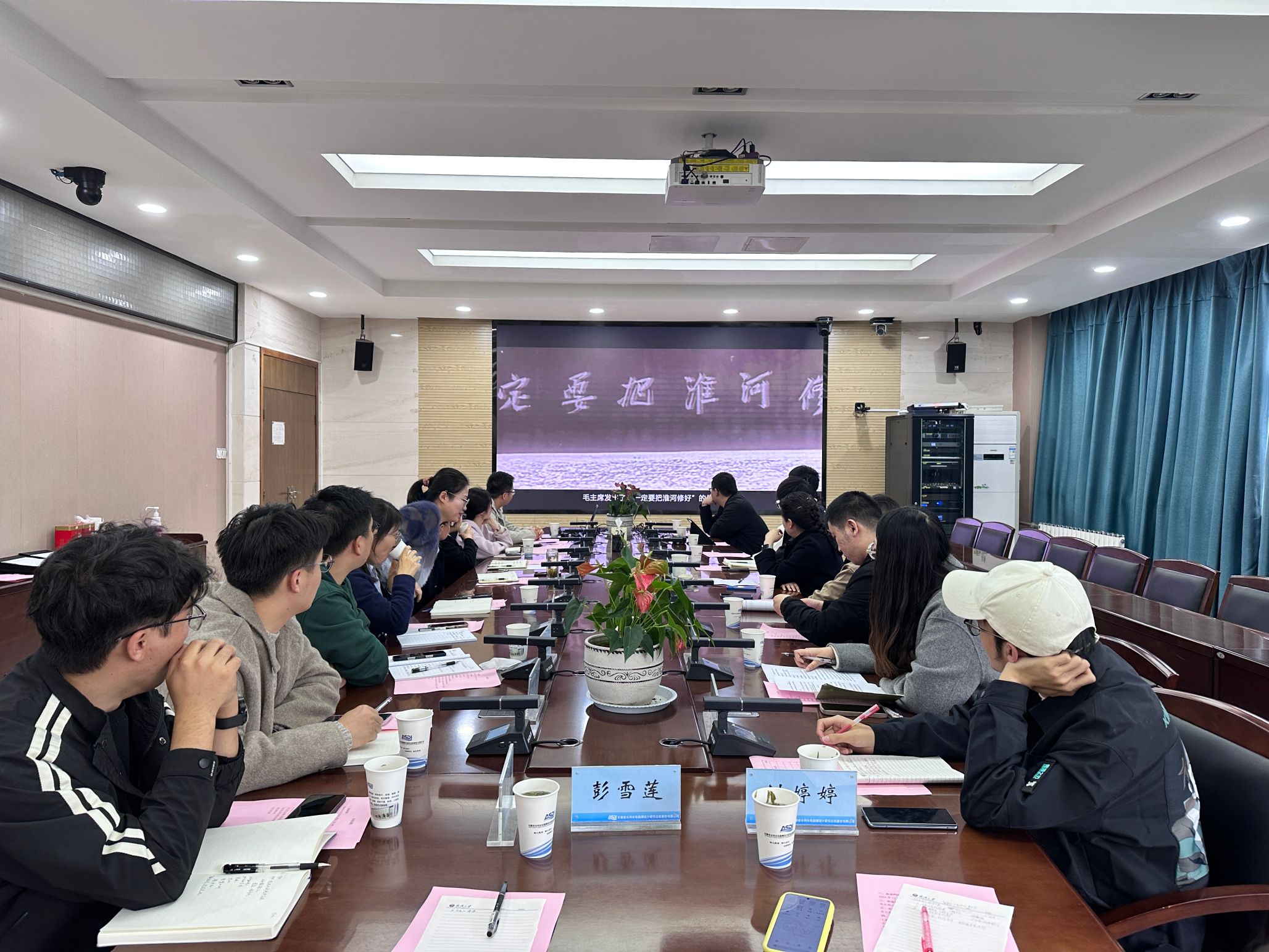 下午,一行人来到安徽省水利水电勘测设计研究总院座谈交流。同学们与研究人员对话分享,学习前辈经验,感受专业实况,了解行业前沿。安徽省院总工程师张健介绍了安徽总院的发展历程、整体情况和未来战略,并指出安徽院注重人才培养,始终鼓励青年一代树立治水报国的理想,锤炼脚踏实地、甘于奉献的品质,希望与我院加强交流与合作,携手在水利科技创新、人才培养和项目实践等方面开展更深层次的互动。随后,安徽省院工程师王恺祯和助理工程师乔志伟分别作“深耕江淮大地,打造现代化安徽水网”和“新起点新征程,走近总院公司与引江济淮工程背后的建设者”的主题分享,鼓励同学们脚踏实地、潜心钻研,以创新和务实的精神迎接挑战,坚定为水利事业发展贡献青春力量的理想信念。