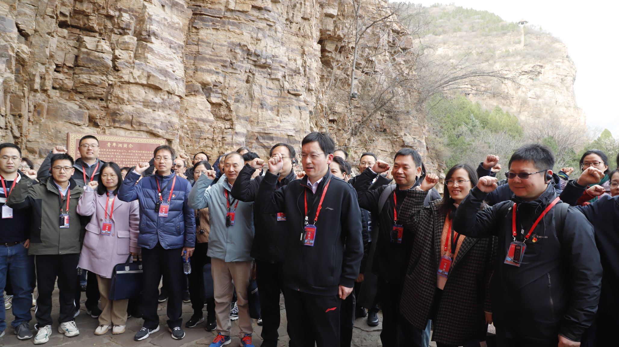 11月30日上午,学员们前往红旗渠总干渠上的咽喉工程——青年洞,沿渠重走千里“水长城”,用脚步丈量渠身,更用心感受其中蕴含的伟大精神力量,行走在太行山悬崖峭壁的红旗渠畔,聆听着“劈开太行山,漳河穿山来”的动人故事,实地感受着修建红旗渠所遇到的艰险与挑战,更感受到林县人民齐心协力、劈山凿洞的精神品质。在青年洞前,学院党委书记李典庆带领全体学员面对鲜红的党旗,重温入党誓词,声声誓词在山谷回响,学员们叩问入党初心,牢记一名共产党员的使命担当。