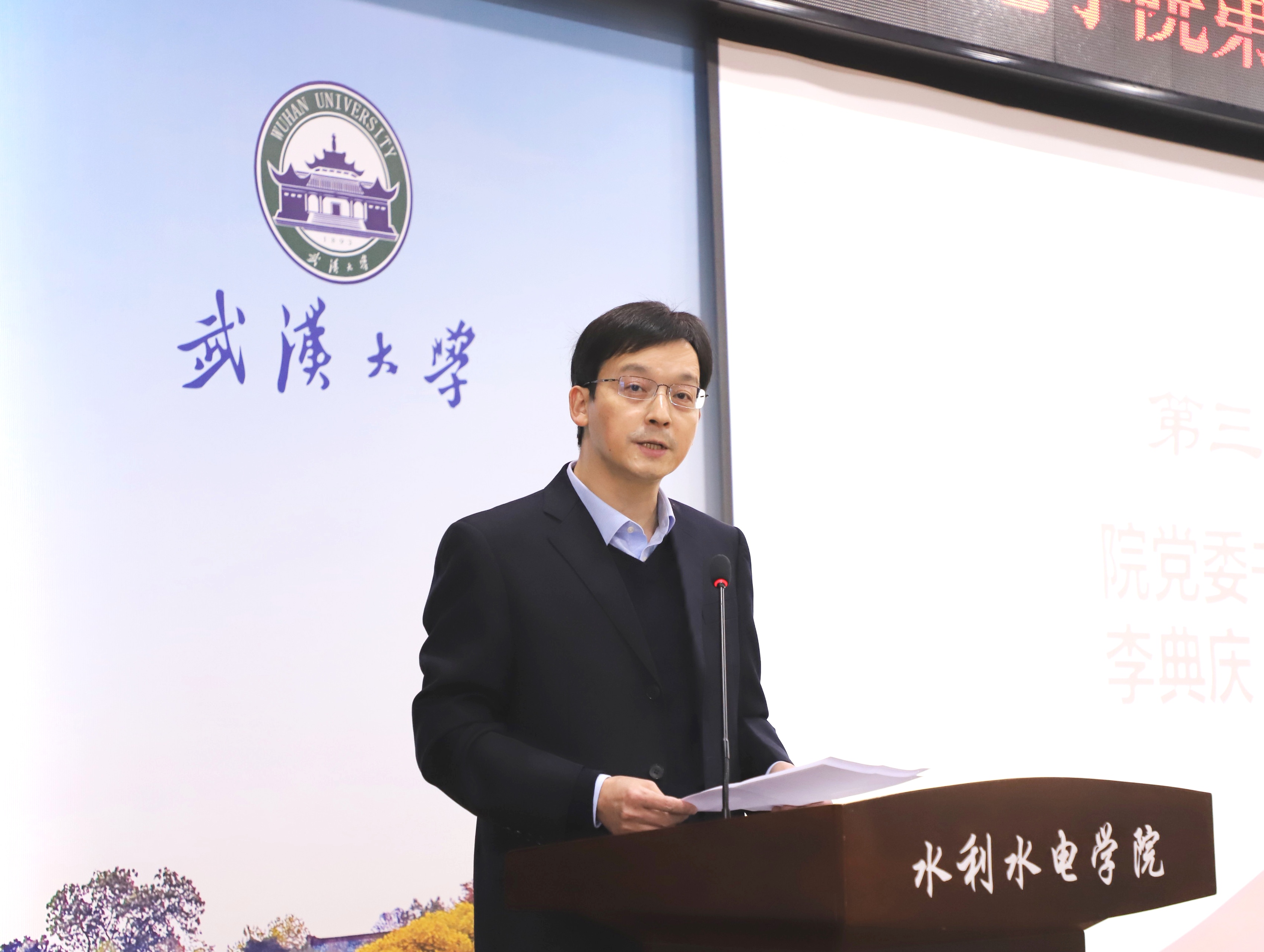 李典庆致辞表示,过于一年院研究生会凝心聚力,在“学术科技、校园文化、就业服务、生活权益、心理健康”等方面开展了大量卓有成效的工作,取得了显著成绩,并再次荣获“武汉大学优秀研究生会”称号,希望新一届研究生会和广大研究生,一是坚定理想信念、胸怀“国之大者”,做初心如磐的奋斗者;二是涵养专业底色、培养跨学科思维,做迎难而上的赶考人;三是砥砺服务初心、发挥纽带作用,做履职尽责的连心桥;四是激活改革创新、筑牢团结堡垒,做善战善成的奋进鼓。