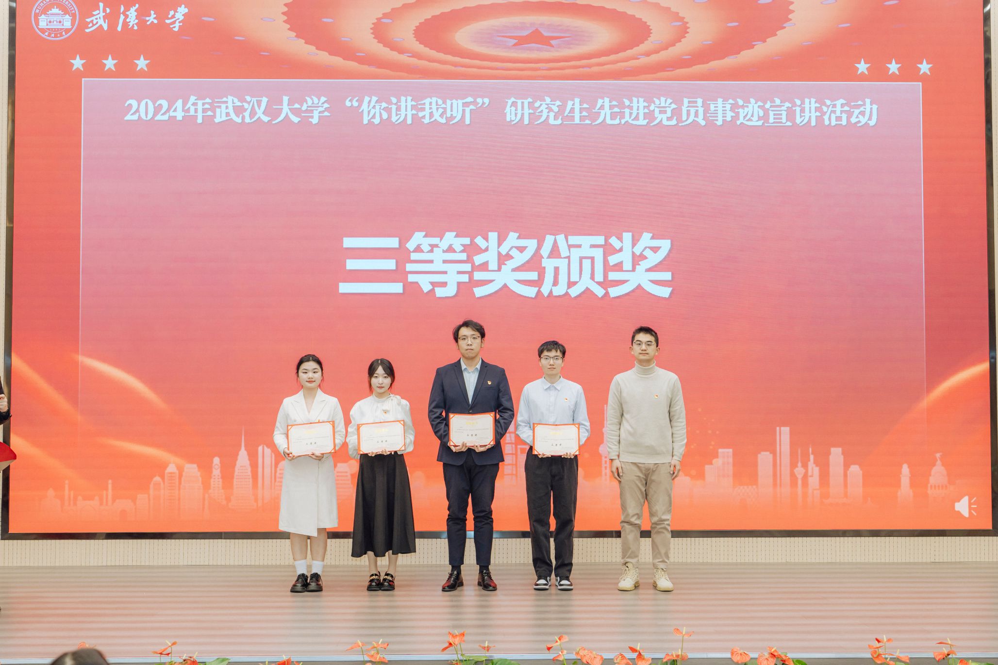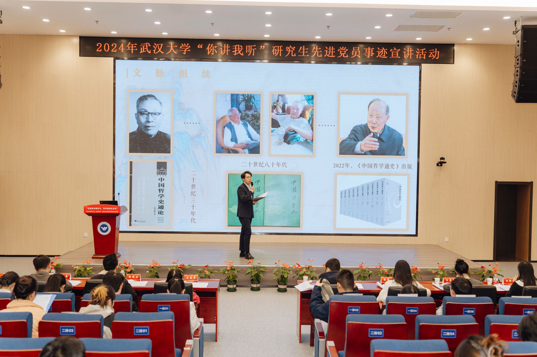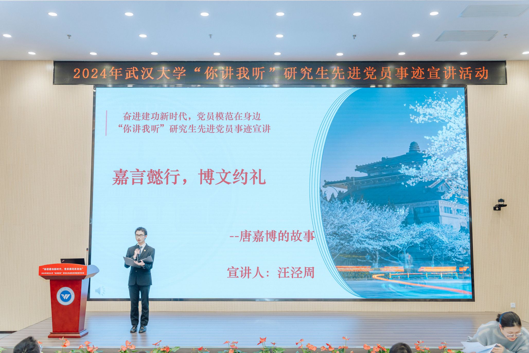 奋进建功新时代,党员模范在身边。据悉,“你讲我听”研究生先进党员事迹宣讲活动为武汉大学2024年学生党支部“活力创新工程”立项项目,已连续举办两届,旨在发掘身边的先进党员事迹,见人见事见精神,强化使命与担当。先进党员的事迹宣讲,如同灯塔照亮前行之路,不仅展现了党员的风采,更激励着每一位同志不忘初心、勇攀高峰。希望广大研究生同学从中有所感悟、汲取营养,在今后的学习、生活和科研工作中,接续砥砺奋斗,共同书写属于青年学子的辉煌篇章。