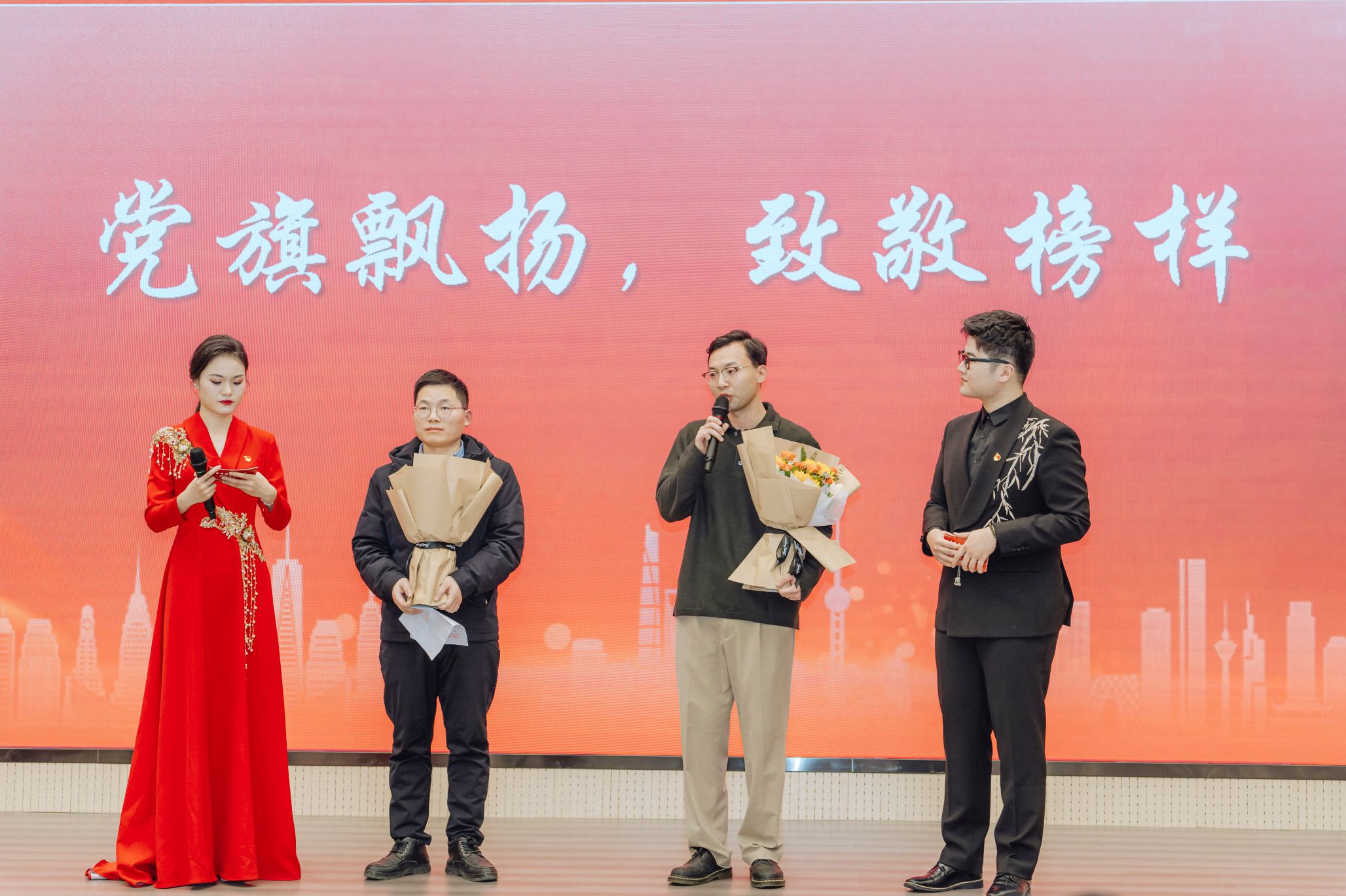 在宣讲的最后,宣讲人向宣讲对象送上鲜花,表达最诚挚的敬意。主持人对到场的先进党员代表进行了采访。来自第二临床学院的吴明正同志分享了自己去往基层医院挂职锻炼的初心和经历,饱含对党的敬仰和对医学事业的热爱,鲜明展示了先进党员到群众中去的责任和担当;来自水利水电学院的唐嘉博同志分享了自己在建设全国样板党支部方面的经验,强调集体和传承的重要性,为研究生党支部建设提供了宝贵的借鉴和启示。