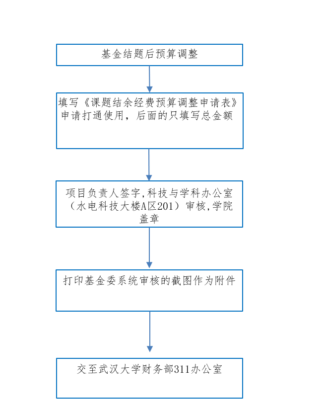国家自然科学基金结题后的剩余经费如需使用的,填写“课题结余经费预算调整申请表”交至科技与学科办公室(水电科技大楼A区201办公室)审核备份并打印基金委系统截图证明,用于重新调整经费额度以免报账的时候因财务额度没有打开导致报账失败。谢谢。