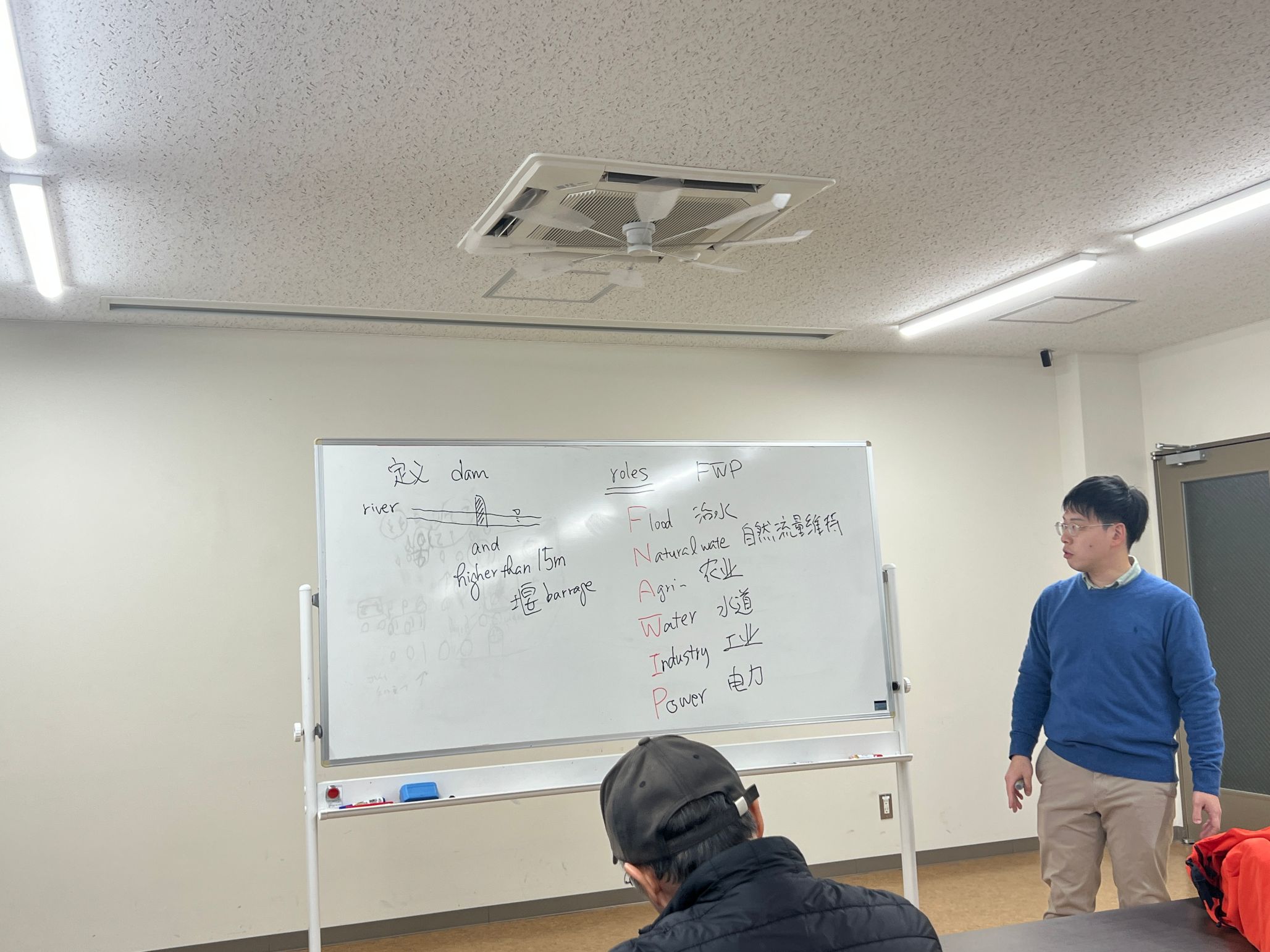 1月24日,实践队前往京都大学宇治校区参观学习。小柴孝太老师为大家带来了一场生动的讲座,分享了有关大坝、水库淤积治理、抽水蓄能电站的相关知识。通过这次讲座,队员们学习到了中日双方在水库运用和管理方面的宝贵经验。虽然两国的地理条件和社会需求有所不同,但在许多方面都可以相互借鉴与学习,需要因地制宜地采取相关措施。