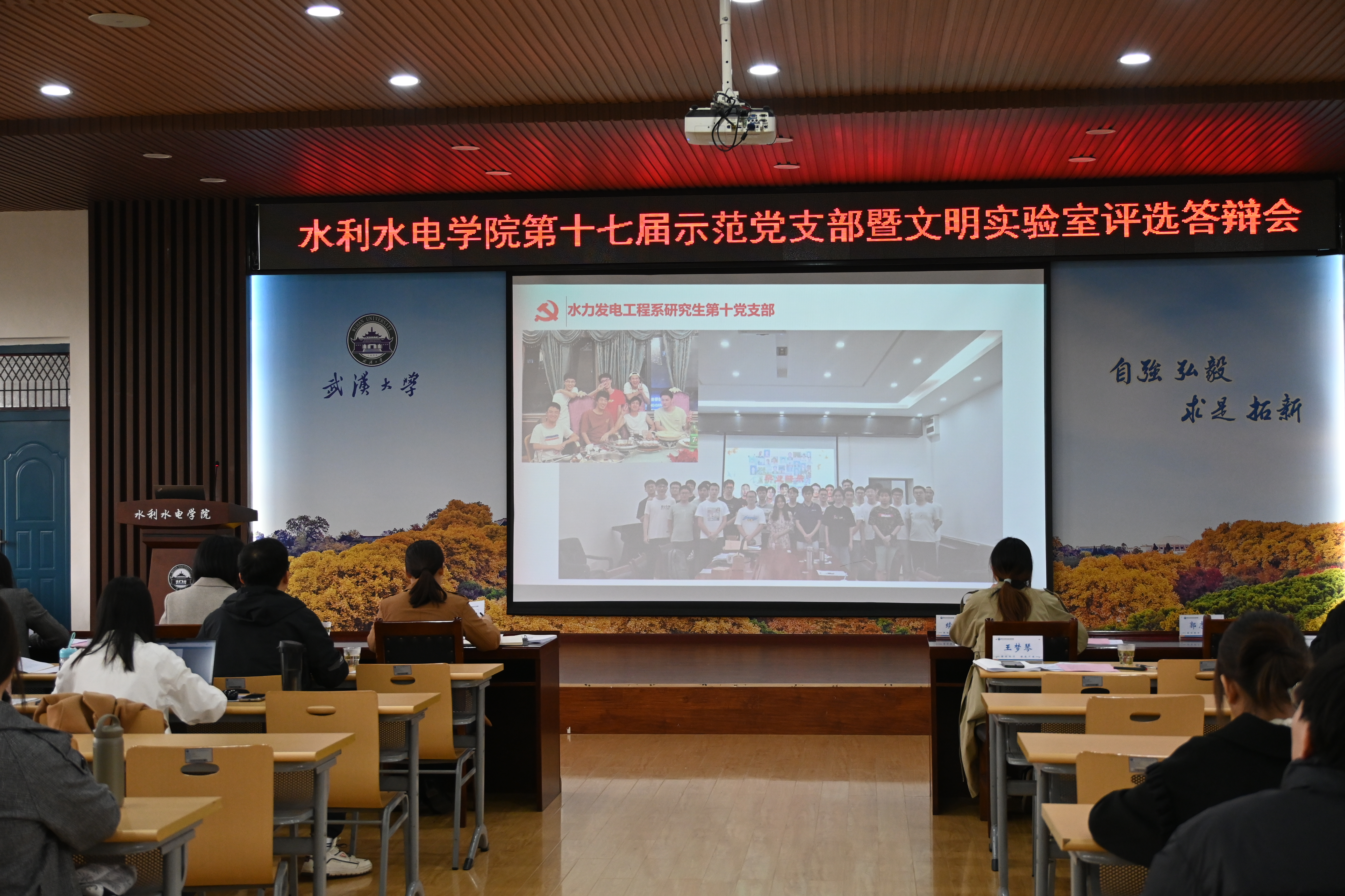 水力发电工程系研究生第七党支部文化建设成果丰硕,有学术沙龙、照片文化墙等,通过“双促双带”继续打造“高坝”品牌党支部;水文水资源系研究生第一党支部继续发扬教育部百个样板党支部的榜样力量,坚持“党建引领促发展”的工作思路,学术交流与体育健魄并进,自建党支部校友录和新媒体宣传平台,党团共建全方面促进党支部建设; 水文水资源系研究生第二党支部则通过党员发展积分制,发展材料一对一制,预备党员履诺跟踪制度,党员讲党课制度等党建工作创新发展党支部......各支部亮点频出,精彩纷呈。