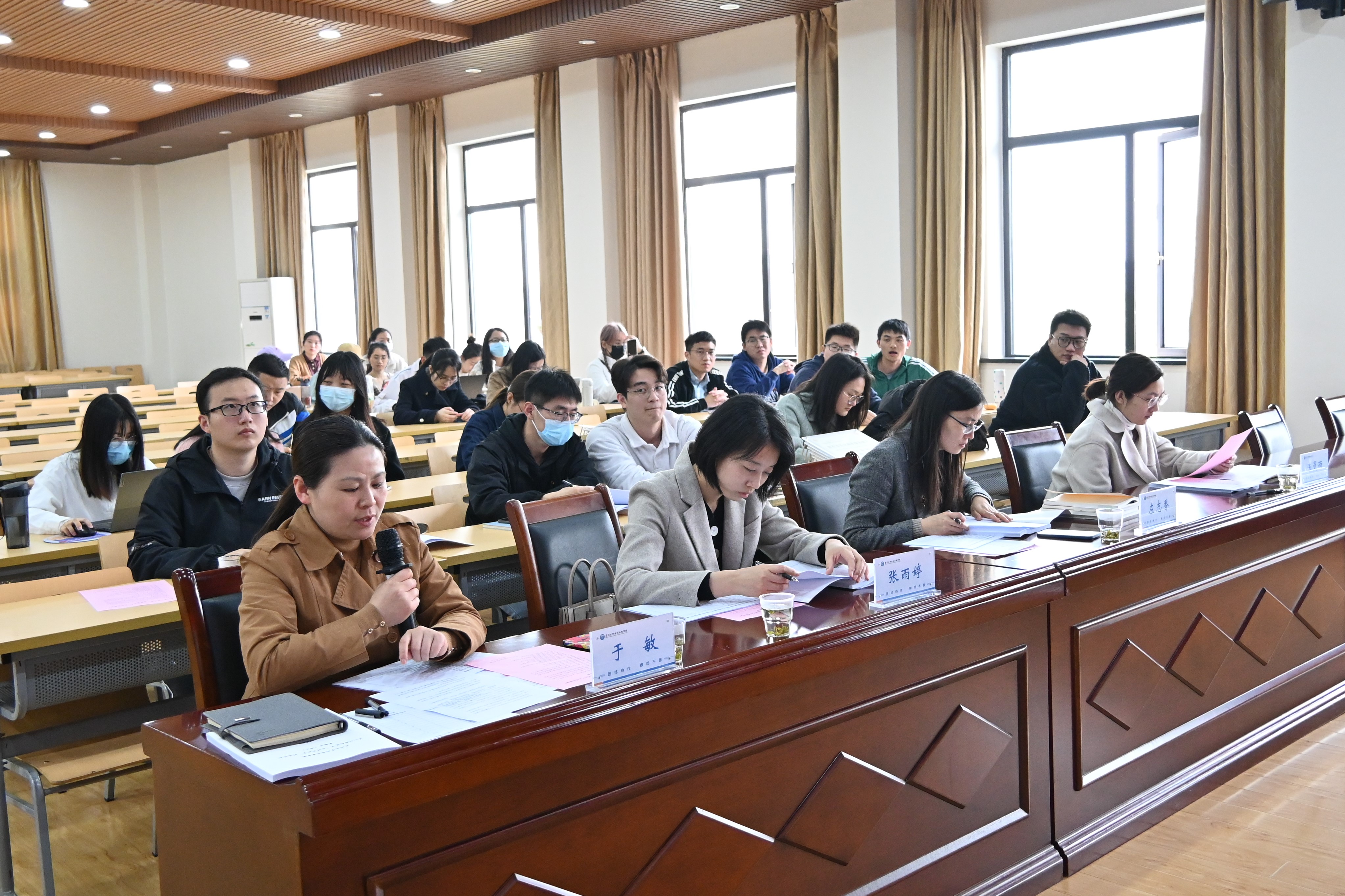 学院党委副书记于敏,校研工部党建与思想政治教育办公室副主任张雨婷,学院研究生辅导员左志香、陈曼雨,校党建研究会副会长续文刚,院研究生党总支委员、院研究生会主席团代表应邀出席本次活动并担任评委。答辩会由万柳柳和王三省主持。