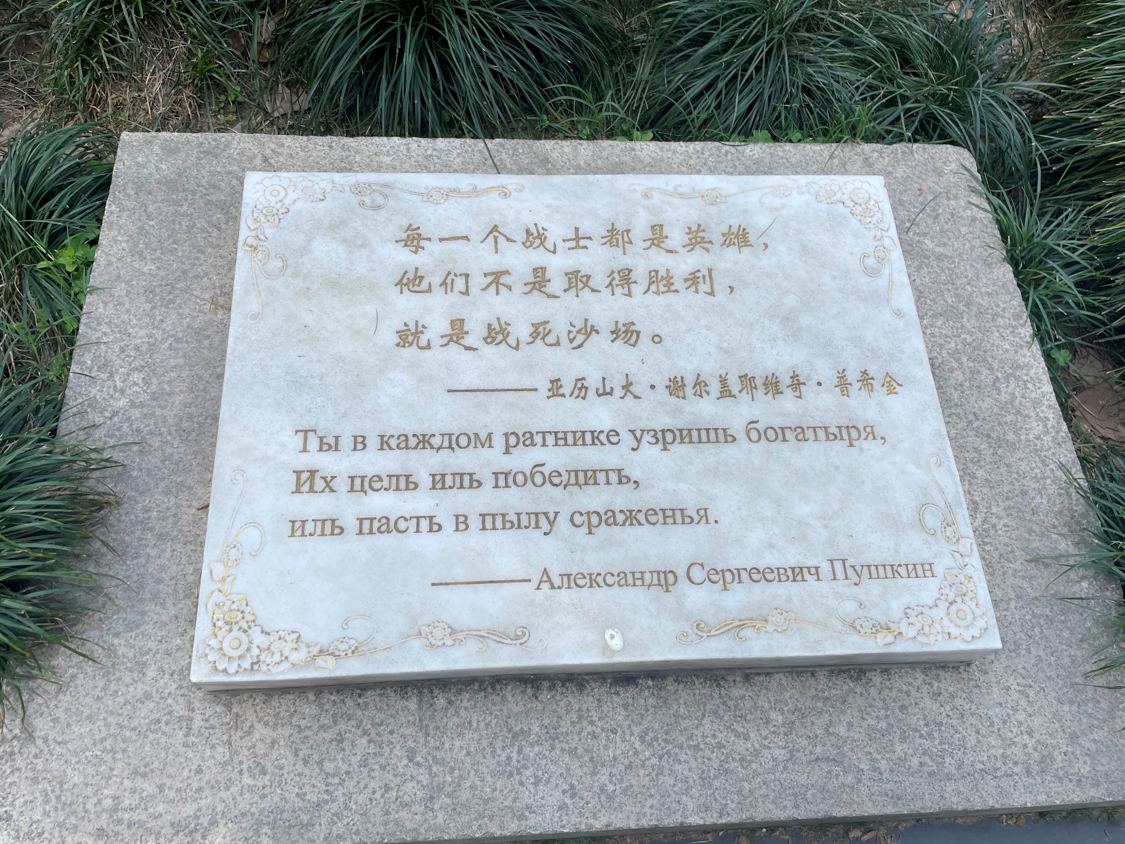 支部书记郭姝婕同志向大家介绍了苏联空军志愿队烈士墓的历史背景:1938年至1939年,苏联派遣空军志愿队到中国参加抗日战争,苏联空军志愿队与中国空军一起在武汉上空与日军展开激战,打击了日寇的嚣张气焰,库里申科等100多名指战员为此献出了宝贵的生命,其中29位烈士的遗骨安葬于武汉。习近平总书记曾指出,一个有希望的民族不能没有英雄,一个有前途的国家不能没有先锋。包括抗战英雄在内的一切民族英雄,都是中华民族的脊梁,他们的事迹和精神都是激励我们前行的强大力量。