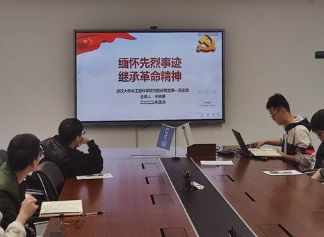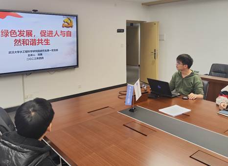 2023年4月27日18:00,为深入学习贯彻习近平新时代中国特色社会主义思想和党的二十大精神。水工程科学研究院研究生第一党支部在工学部1教B213会议室召开四月组织生活会。本次会议议程包括学习习近平生态文明思想和缅怀革命先烈。本次会议由支部书记张思凡同志主持,研究生辅导员李丹老师参加会议。