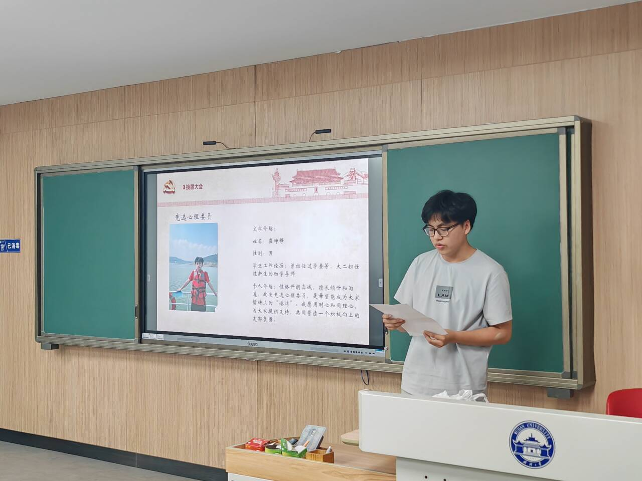 会议第二项议程,开展换届大会。本次换届大会选举出了水文水资源系研究生第四党支部2025-2026学年的组织委员、宣传委员和纪检委员。候选人们结合工作经历、对支部工作的理解及未来规划,进行表态发言,展现投身支部建设的热情。经到会正式党员投票选举,余浩然同志当选支部组织委员,冉庆洋同志当选支部宣传委员,贺文婷同志当选支部纪检委员。换届工作的顺利交接为支部工作有序开展筑牢组织根基。