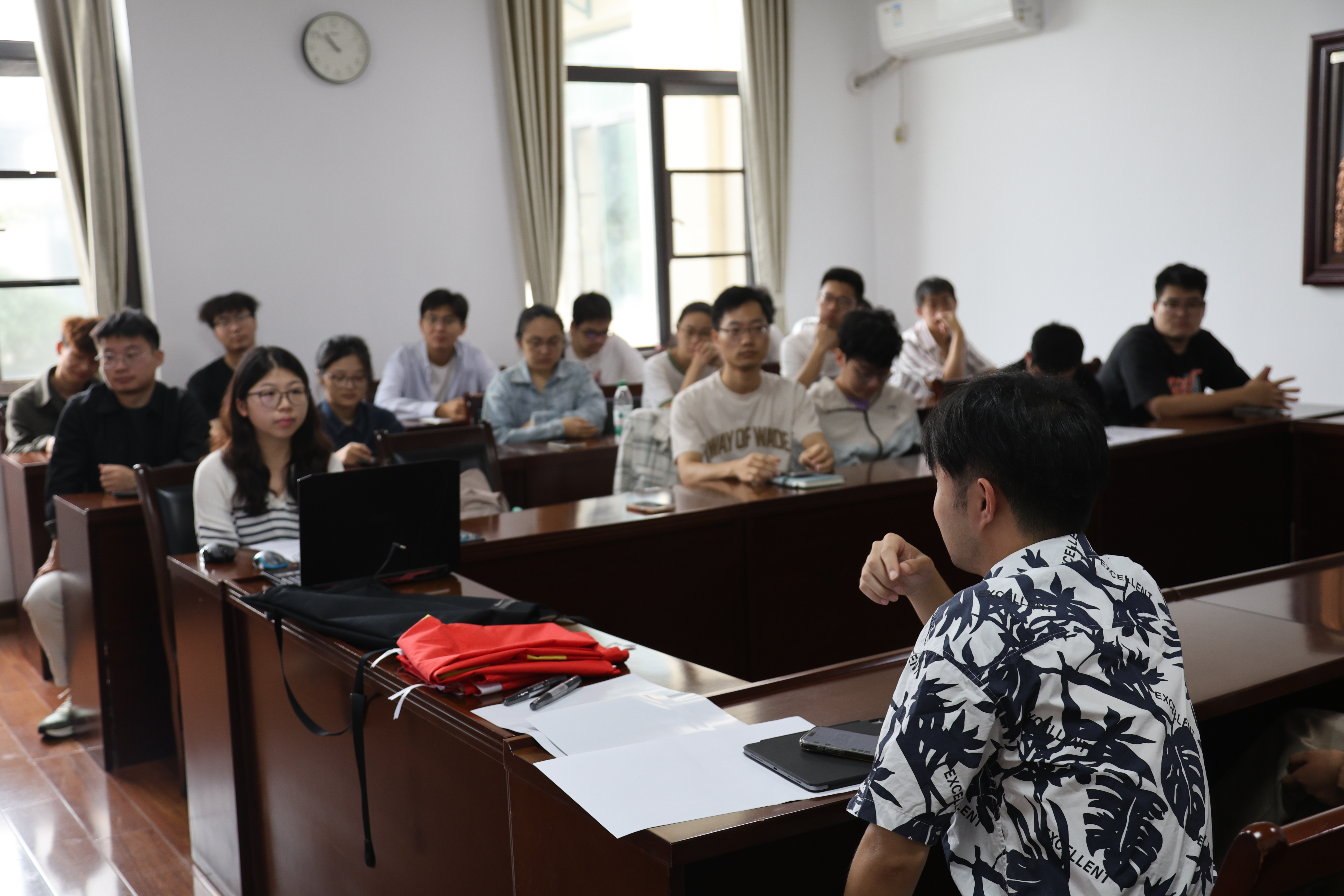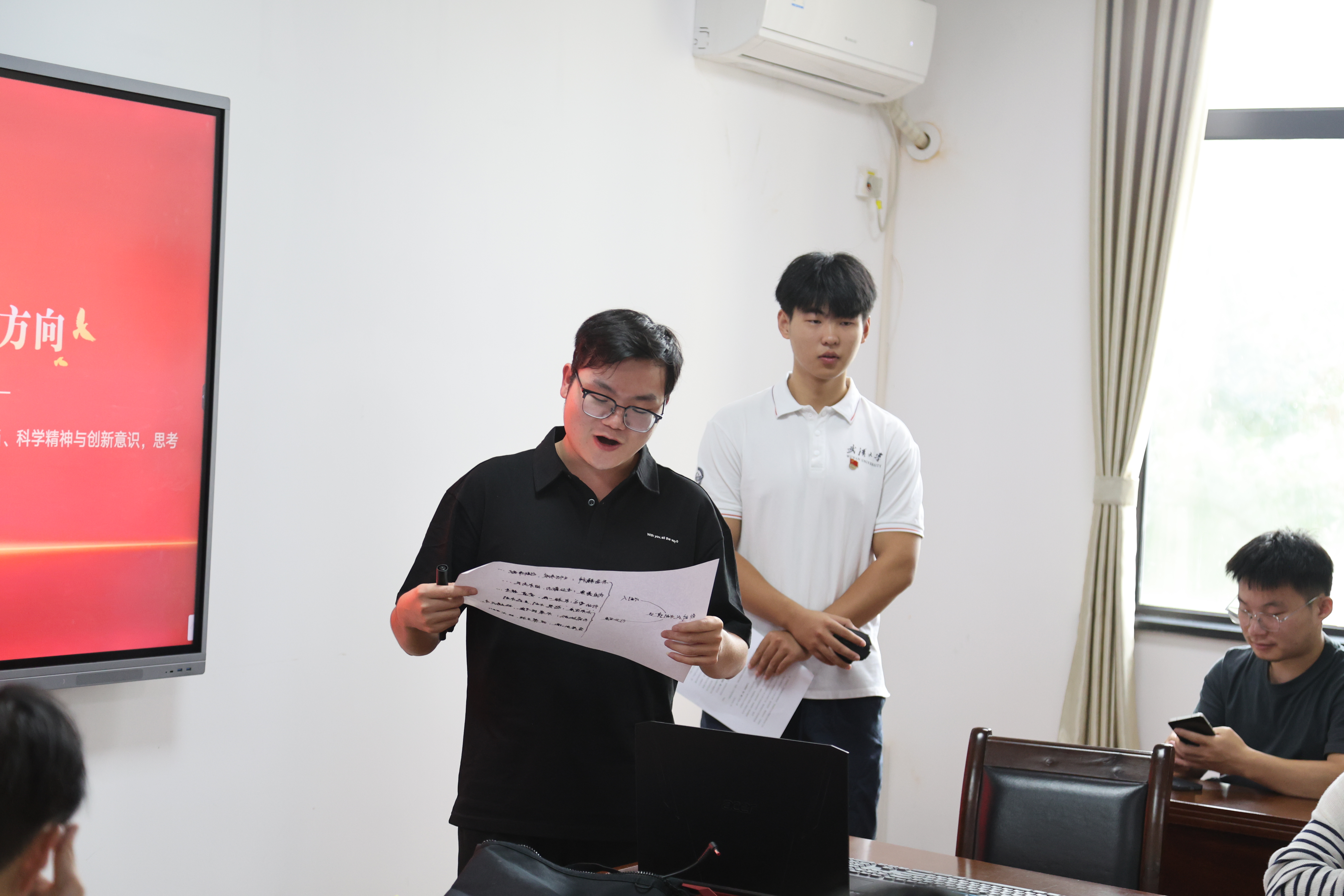 国歌奏毕,活动进入时政学习环节。首先,王梦洋同志详细解读了“节水优先、空间均衡、系统治理、两手发力”的治水思路,通过具体案例和数据,让与会成员深刻理解了这一战略在水利工作中的重要性和紧迫性。接着,同志们围绕如何构建节水与监管新范式进行了制度创新方面的学习。这一环节不仅提升了全体成员的理论素养,也为后续开展讨论奠定了坚实的基础。