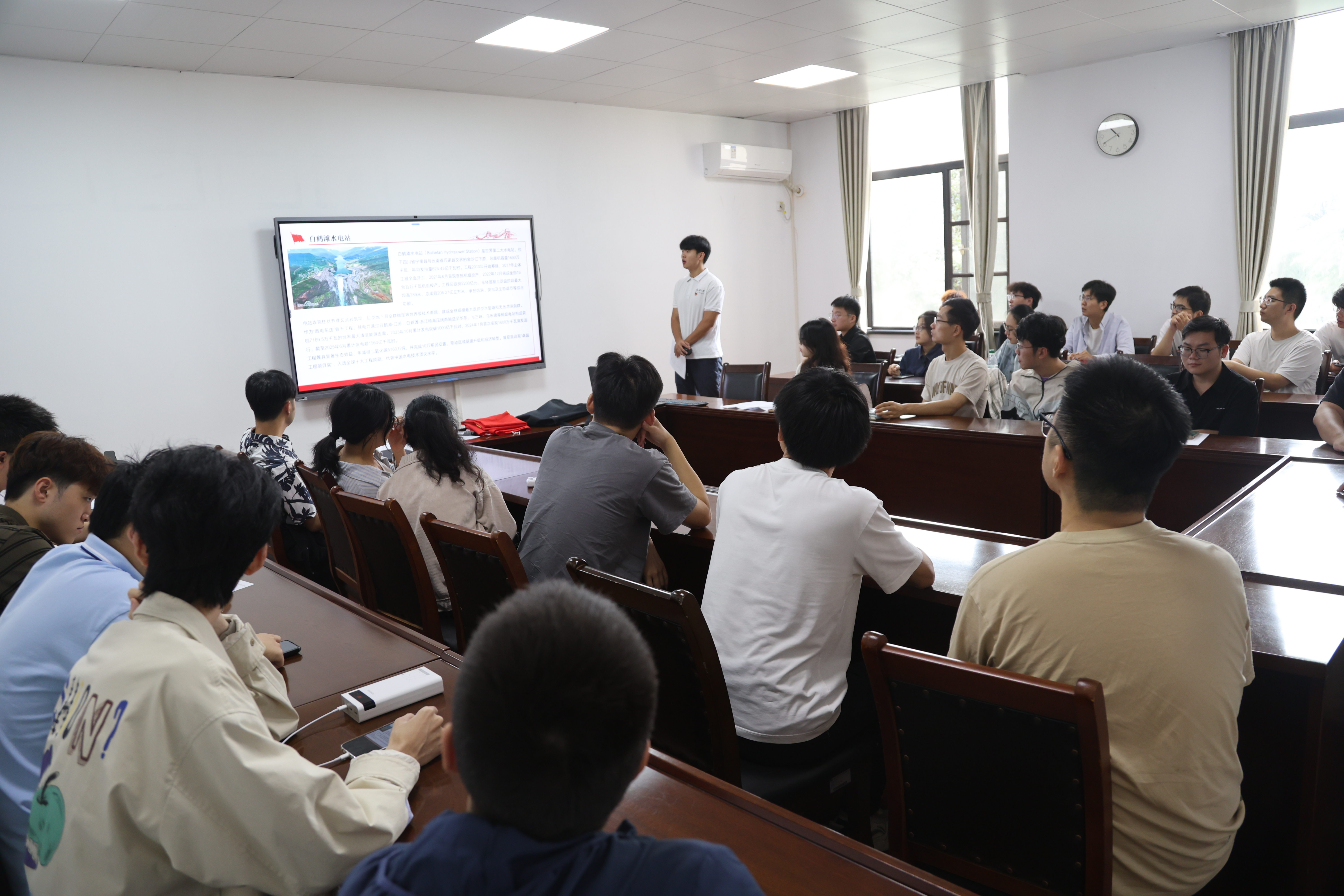 小组讨论结束后,全体同志来到工学部主教草坪上,在爽朗的秋风中,进行长江主要水利设施的讲解和学习。这一环节加深了同志们对这些水利设施的建设历程、技术特点和运行成效的了解,不仅增强了同志们的专业能力,也进一步激发了同志们对水利事业的热爱。