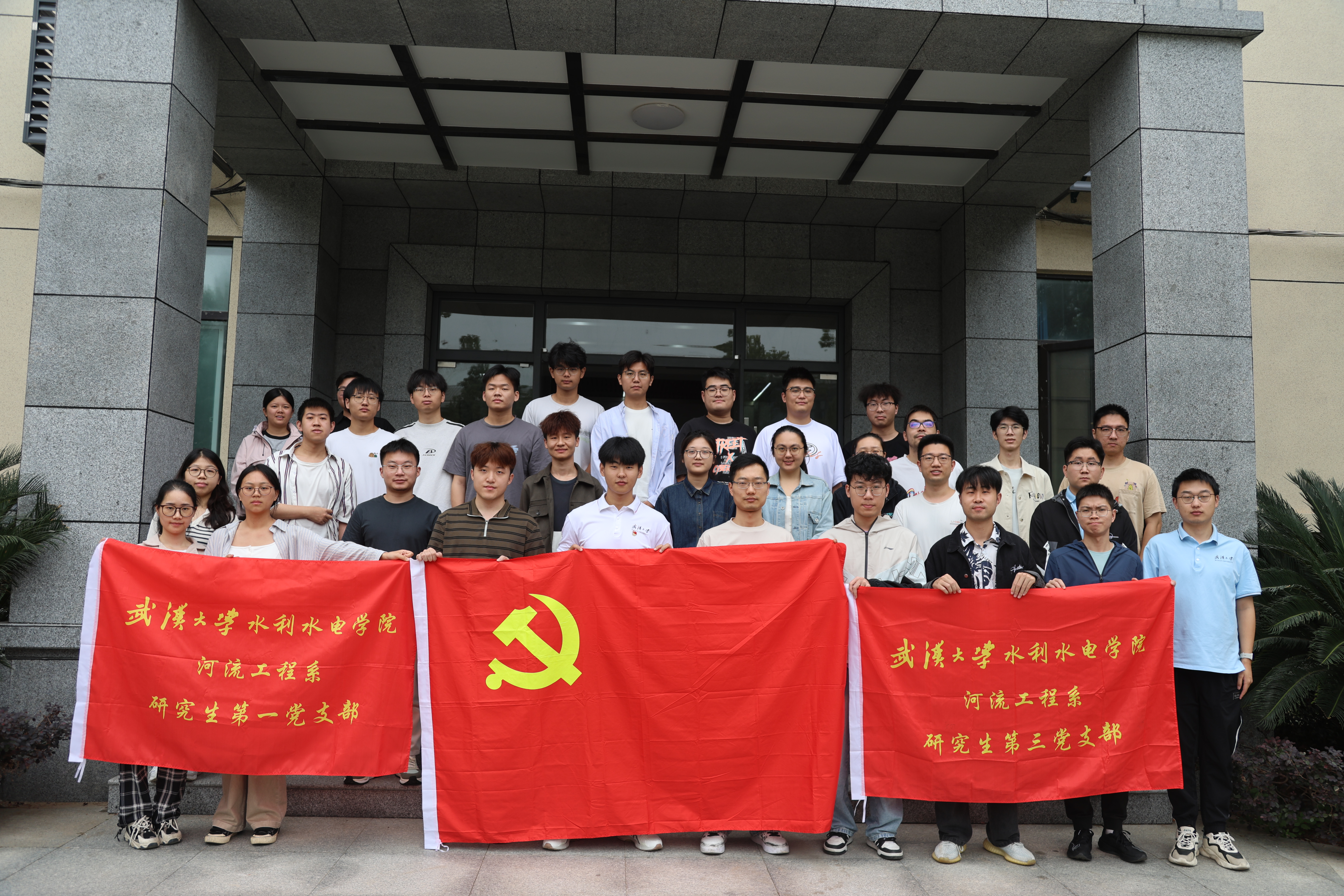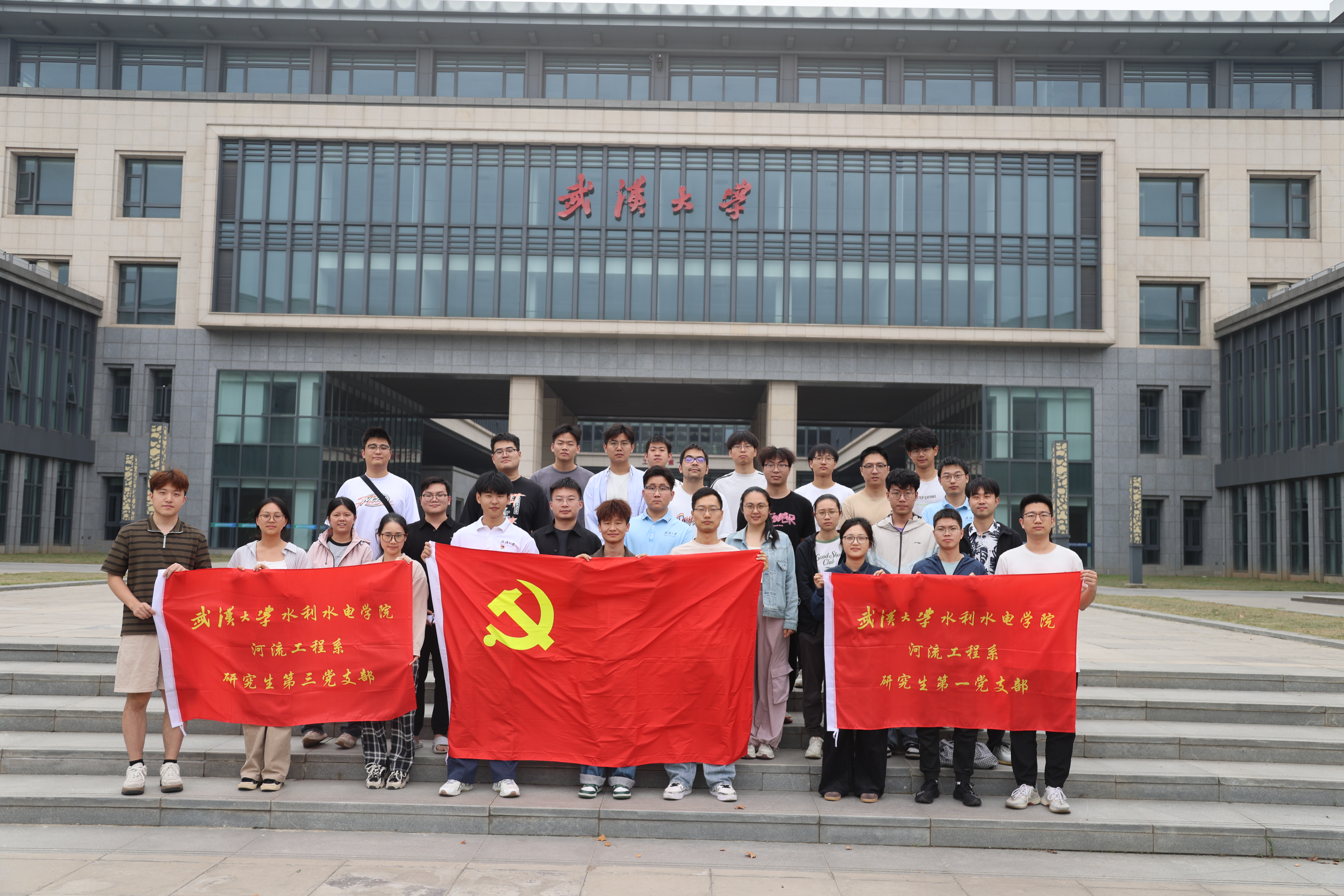 在活动的最后,河流工程系研究生第一、第三党支部的全体同志进行了合影留念。此次活动中,同志们通过唱国歌强化信仰,学时政明确方向,听分享感悟初心,谈思路凝聚共识,看设施践行实践,环节紧凑,意义深远。水利事业关乎民生、关乎生态,同志们将始终以严谨态度对待使命,以务实作风开展工作,在守护江河、推进水利发展中,发挥先锋模范作用,不辜负组织信任与群众期待。