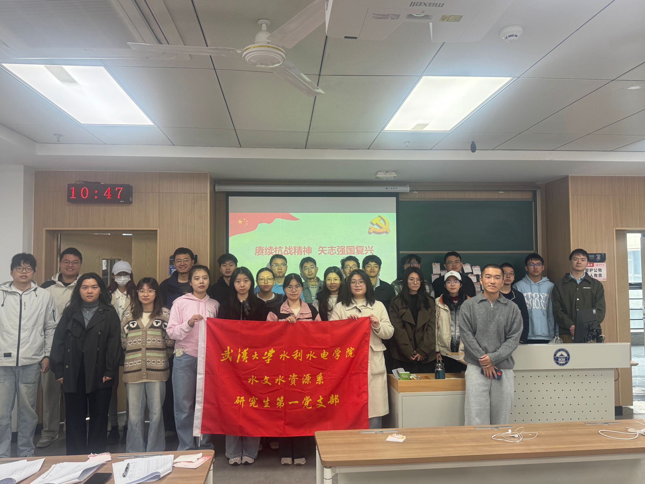 回顾烽火岁月,传承红色基因,2025年10月25日,水文水资源系研究生第一党支部举办了以“赓续抗战精神,矢志强国复兴”为主题的党日活动,通过系统学习与实地探访,深刻回顾中国人民抗日战争暨世界反法西斯战争的壮阔历程与伟大胜利,缅怀革命先烈和遇难同胞,弘扬以爱国主义为核心的伟大民族精神,引导党员同志从历史中汲取前行力量。