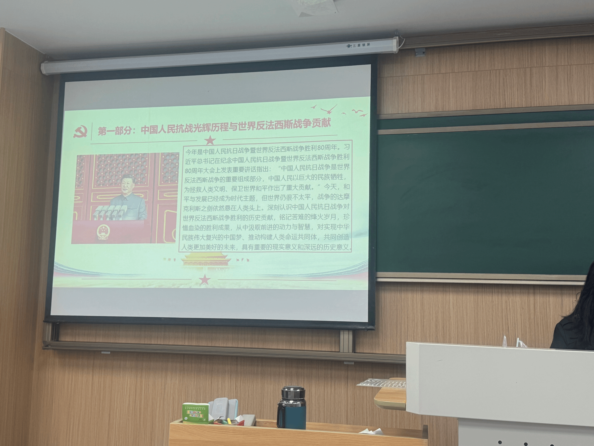 2025年10月25日早上十点,支部在工学部主教A312教室开展了以“重温抗战历史,弘扬爱国精神”为主题的专题党课。支部书记蒋欣一首先带领支部成员系统学习了中国人民抗日战争从局部抗战到全民族抗战,直至取得最终胜利的艰苦卓绝历程,重点阐述了中国共产党在抗日战争中的中流砥柱作用,以及中国战场作为世界反法西斯战争东方主战场的巨大牺牲和重要贡献,并解读了抗战精神的内涵与时代价值。