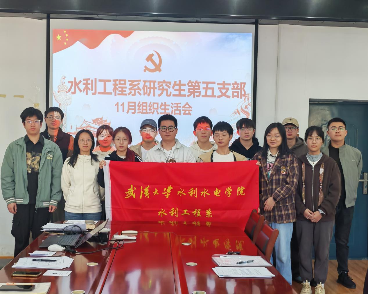 2025年11月13日下午3点,水利工程系研究生第五党支部十一月理论学习会暨党员大会于工学部八教8111会议室顺利召开。会议由党支部书记郝佳同志主持,党支部全体成员参加本次会议。会议包括两项议程:理论学习与讨论田佳辉同志的转正问题,其中理论学习的主题是:深入学习贯彻党的二十届四中全会精神。