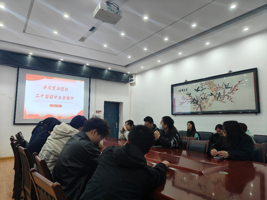会议第一项,由梁霄同志带领支部全体成员深入学习贯彻党的二十届四中全会精神。梁霄同志带领与会同志围绕全会的背景和意义、“十四五”成就回顾、“十五五”决策部署和学习贯彻全会精神展开学习。党的二十届四中全会准确把握我国发展的历史方位,深入分析国际国内形势,明确了“十五五”时期经济社会发展的指导方针和主要目标,擘画了未来五年发展的宏伟蓝图,是乘势而上、接续推进中国式现代化的又一次总动员、总部署,必将对党和国家事业发展产生重大而深远的影响。学习好贯彻好全会精神,是当前和今后一个时期全党全国的重大政治任务。梁霄同志指出作为研究生党员必须学习好贯彻好全会精神,在研究方向选择上,服务国家战略需求;在知识体系构建上,拓宽视野跨界融合;在科研实践过程中,锤炼务实作风与系统观念;在个人职业规划上,立志报国服务人民。