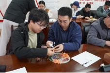 为增进情感联结,活动特意设置了“团扇DIY”手工互动环节。离退休老师与青年学子结对合作,共同在素面团扇上粘贴干花和图案。片片花瓣与缕缕线条在他们的指尖交错、融合,跃然扇上。这不仅仅是一次手工创作,更是一场跨越代际的无声对话,在协作中传递着默契,在创作里沉淀着共鸣。小小的团扇,宛如承载时光的信物,既凝结了两代人之间真挚深厚的情谊,也象征着“清风徐来,匠心永续”的精神传承,成为这次活动中一份独具韵味的情感纪念。