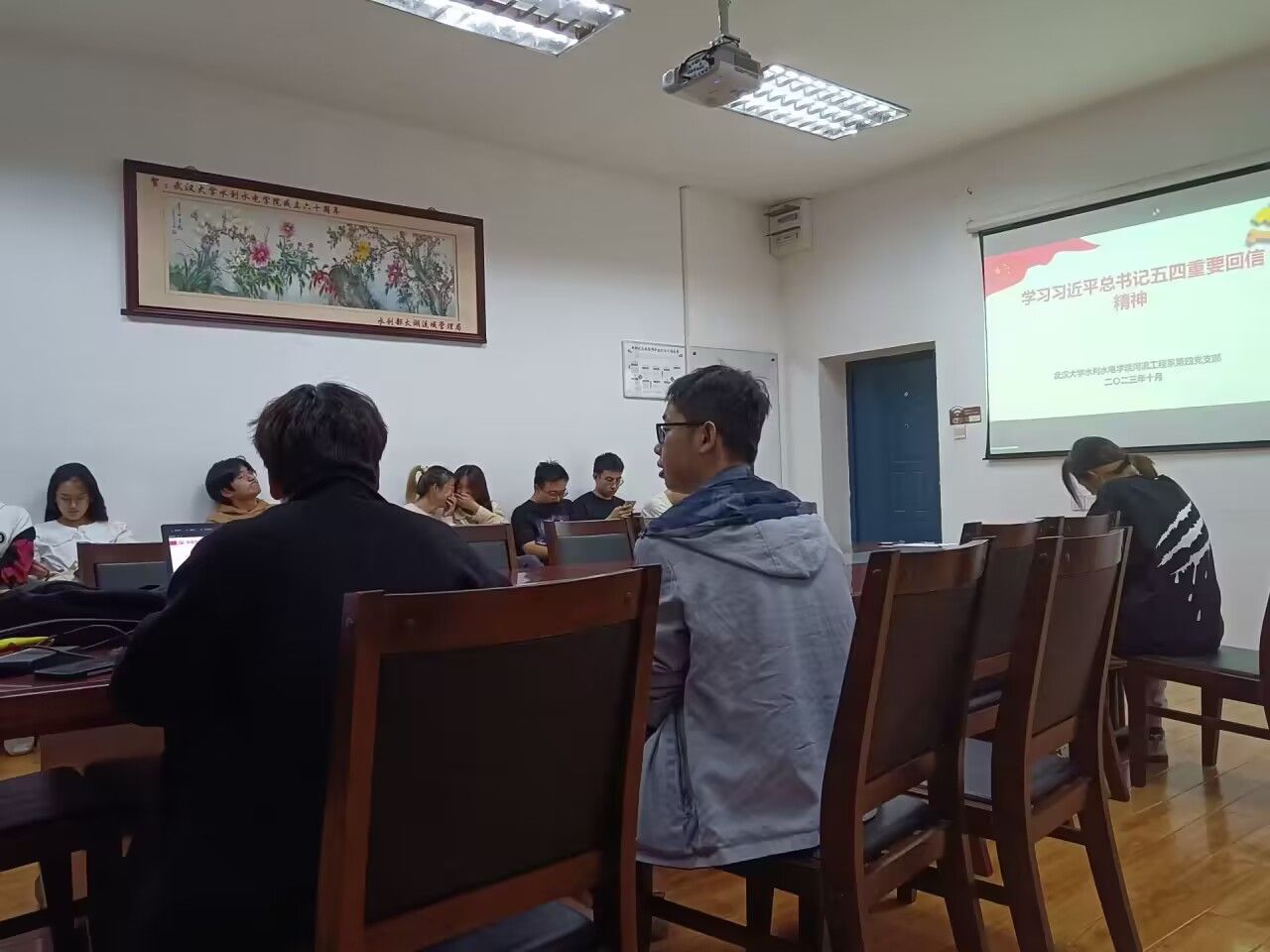 2023年10月27日晚,河流工程研究生第四党支部在工学部八教8110会议室召开10月份组织生活会,本次会议包括三项议程:一是预备党员吴苏雅同志的转正大会;二是”大力弘扬清廉守正、担当实干之风”主题党课;三是学习习近平总书记五四重要回信精神。本次会议由党支部书记刘洪华同志主持,24名正式党员、2名预备党员、4名发展对象及入党积极分子、7名共青团员参加会议。