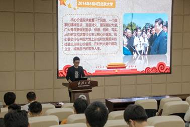 会议第一项,由支部成员赵予翰同志开展学习“习近平总书记一系列高校重要讲话精神”,首先,赵予翰同志介绍了党中央对大学生群体高度重视。党的十九大以来,习近平总书记给青年群体回信10余次,赴高等院校考察10次。习近平总书记对青年特别是大学生朋友有着始终如一的关心关爱,对青年工作倾注了大量的心血。习近平总书记曾说到:“每年五四前后,这个时间我是留给青年人的,到年轻人中间和青年学生相处,到学校看看。”今年五四青年节到来之际习近平总书记再一次履行了这个约定,这一次他走进中国人民大学,向全国青年特别是大学生朋友们提出了殷切期盼:希望广大青年把对祖国血浓于水、与人民同呼吸共命运的情感贯穿学业全过程、融汇在事业追求中!